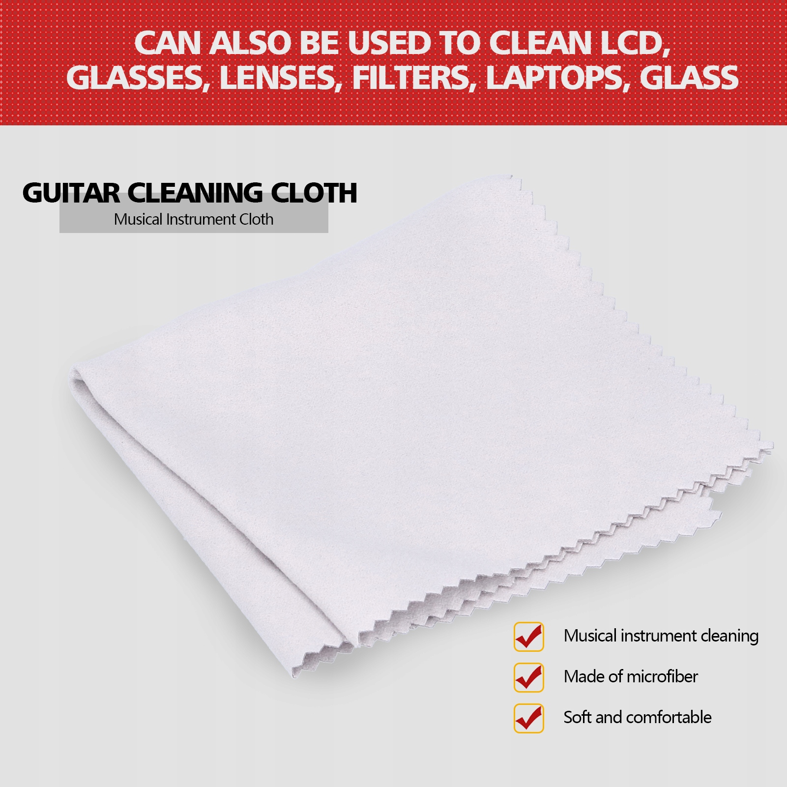 1. Изготовленный из материала из микрофибры, обеспечивает мягкое и удобное прикосновение руки, гибкое, нелегкое измельчение. Он может легко стереть отпечатки пальцев, грязь, пыль или следы жира без повреждения инструмента. Частое вытирание с помощью чистящего агента может поддерживать блеск поверхности гитары и продлить срок службы. Легко чистить, вам нужно лишь небольшое количество мыла и воды, многократное и долговечное. Широкий спектр применений также может использоваться для очистки ЖК -дисплеев, очков, линз, фильтров, ноутбуков, стекла, мебели, фильтров, тканей, сидений, стульев, стекла и т. Д.