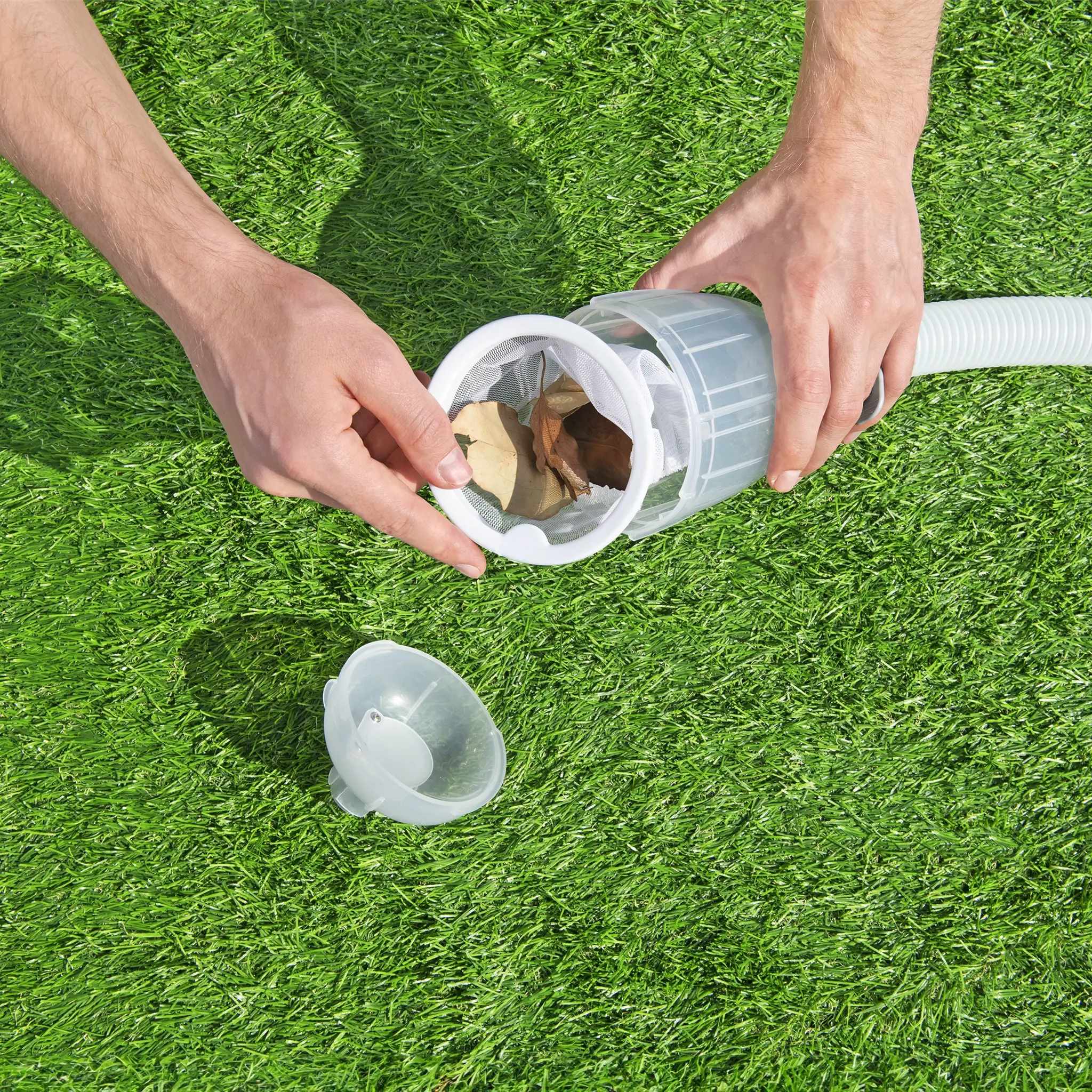 Вы хотите сохранить чистоту в вашем бассейне? И удобно, не опустошив и не наполняя его водой? Bestway Aquaclear Bool Bool Comleder, безусловно, может помочь вам в этом. Это позволяет очистить дно бассейна различными типами отходов, листьев или песка. Кроме того, поддержание чистоты с этим пылесосом станет более удобным и намного быстрее. Длинная телескопическая палочка, контейнер в списке, сетка и заменяемые кончики позволяют эффективно очищать бассейны. Вакуумный очиститель в наборе имеет все необходимые аксессуары для очистки бассейна.