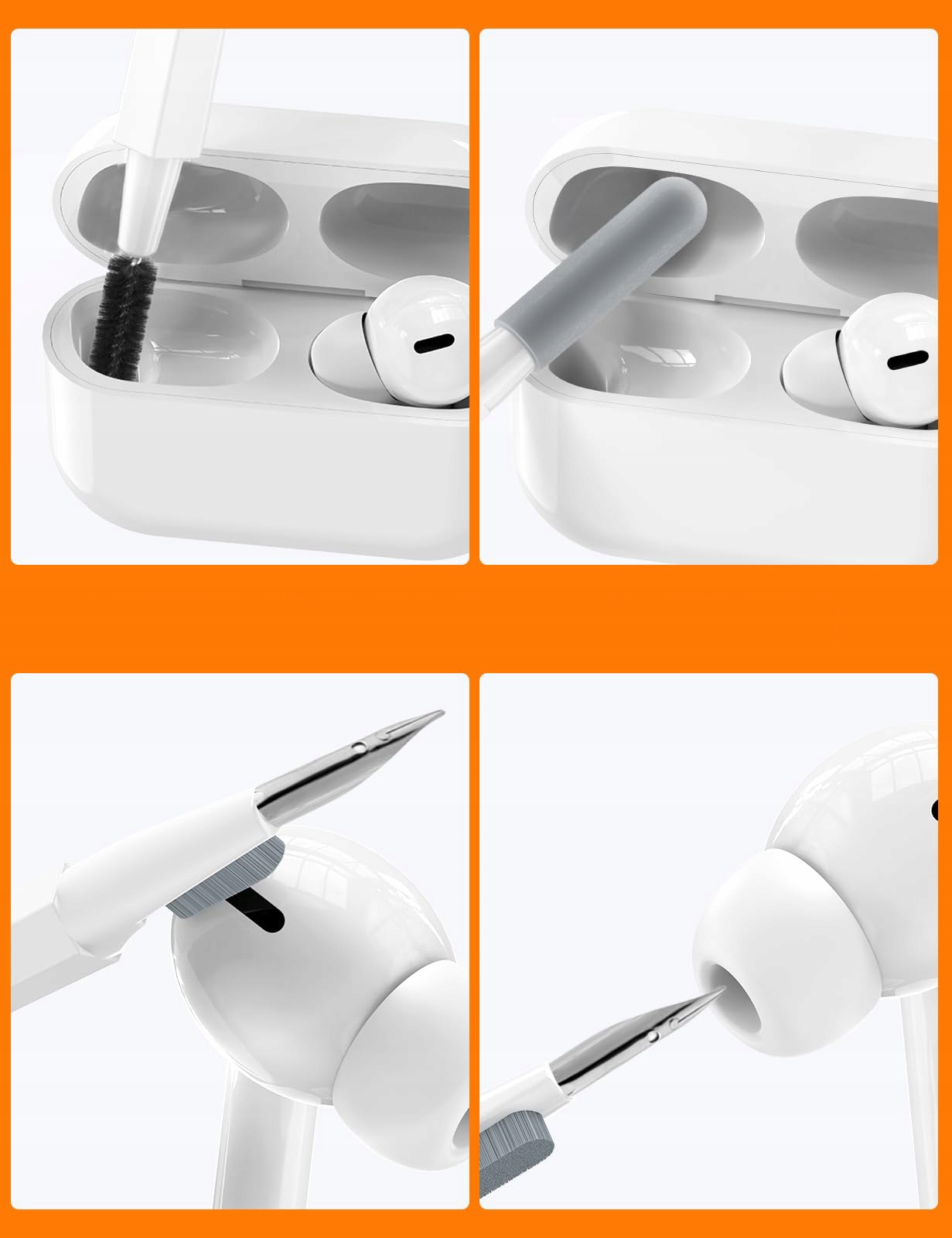 - Вы достигнете везде: специально разработанные элементы очистки. Идеально подходит для твердых мест, таких как углубления между ключами или интерьер наушников.