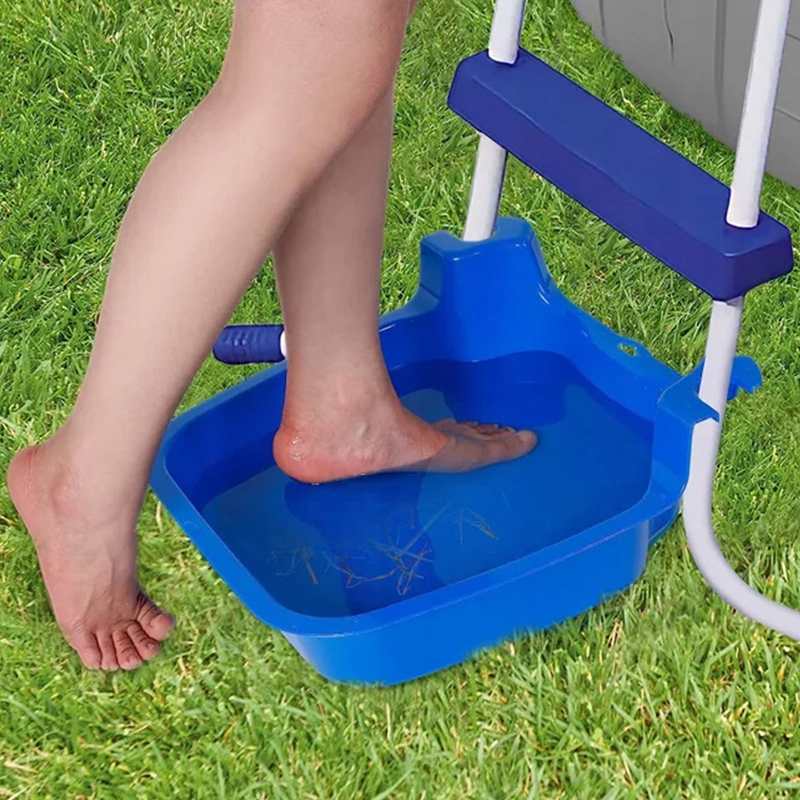 , прежде чем прыгать в освежающую воду, дайте ногам пройти быстрый «спа -салон» - пластиковая чаша, заполненная водой, эффективно удаляет пыль, траву или пыль, которая может загрязнять ваш бассейн. Эффект? Меньше фильтрационной работы и больше времени для настоящего отдыха!