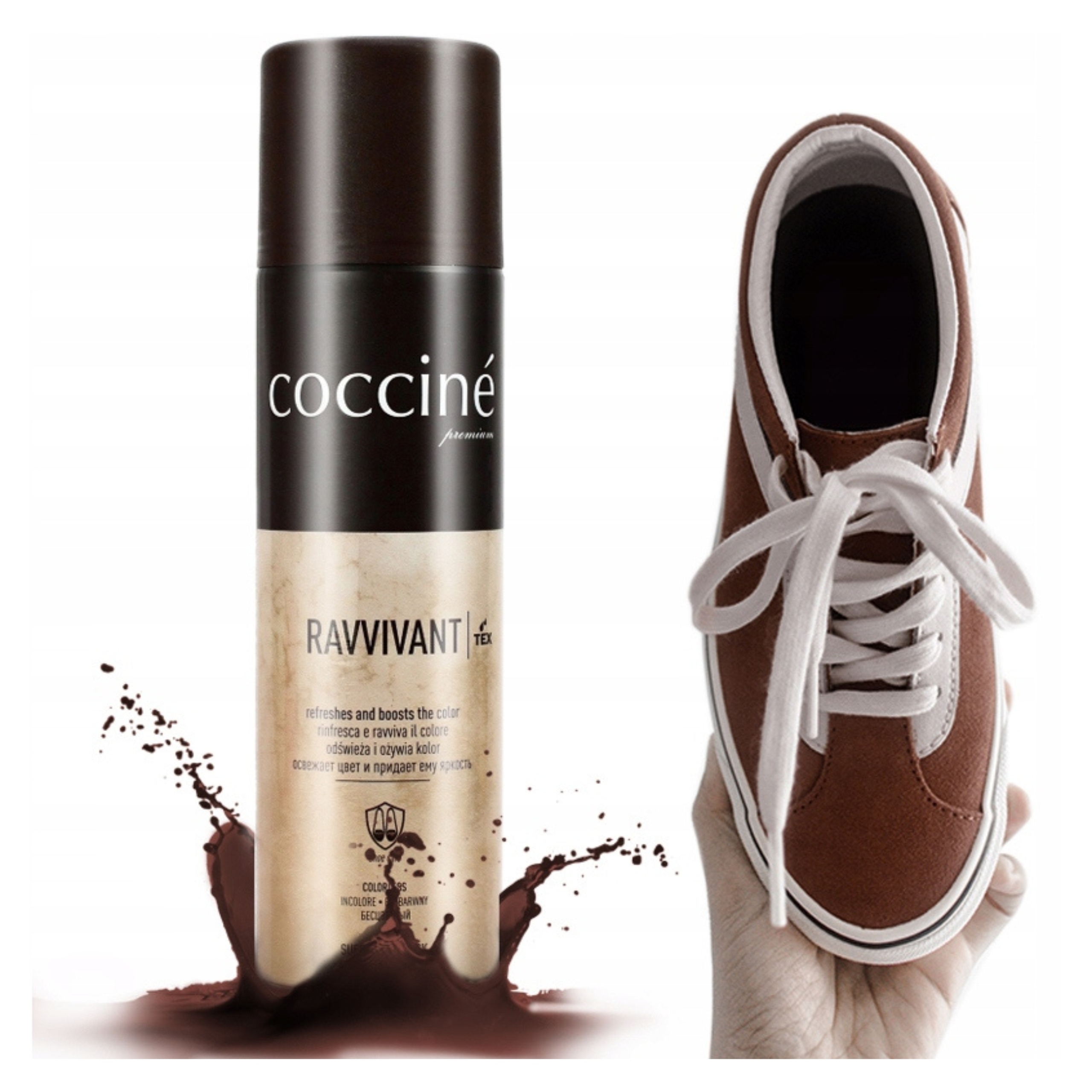 Важнейшие преимущества спрея-обновителя цвета Coccine Ravvivant для нубука и замши: