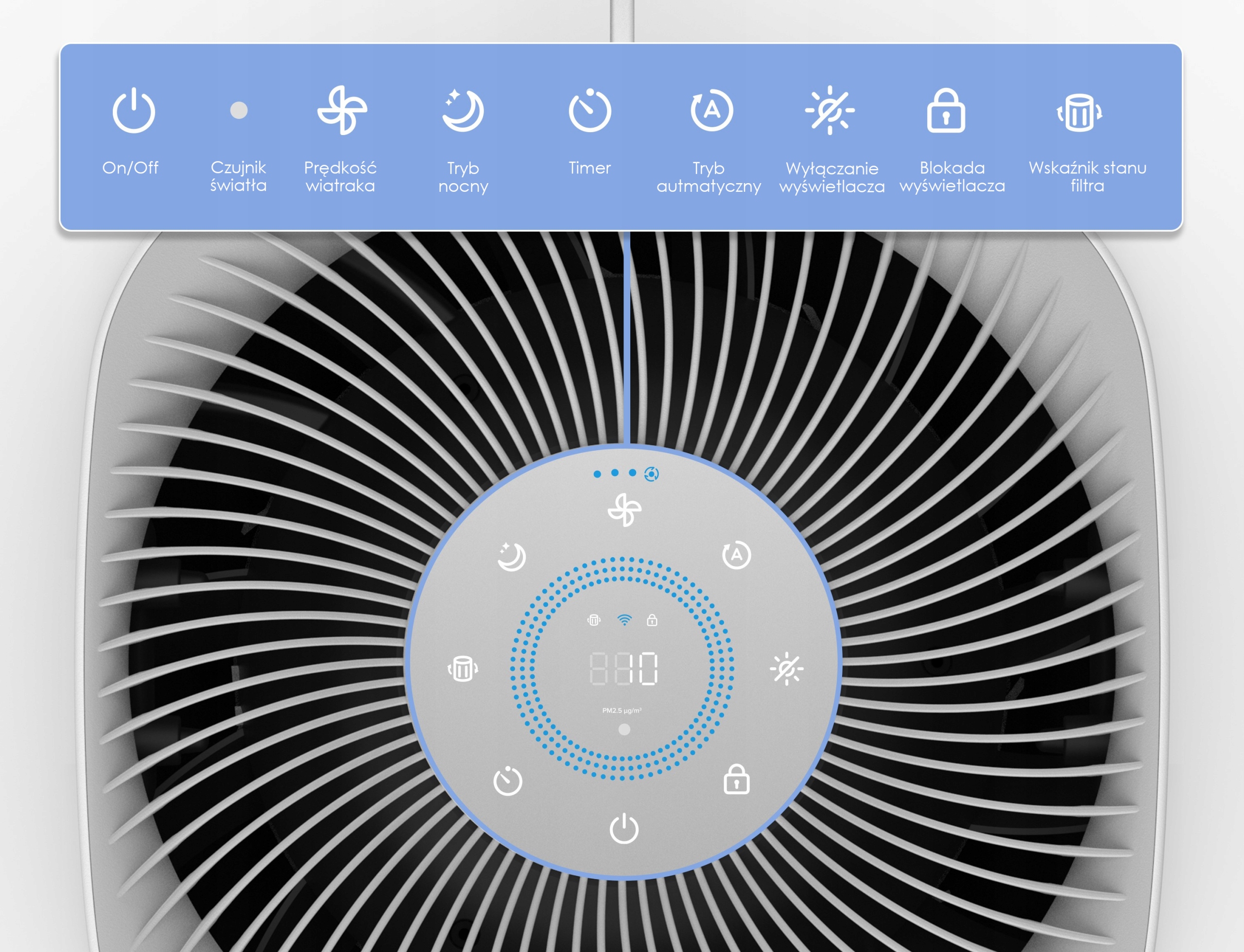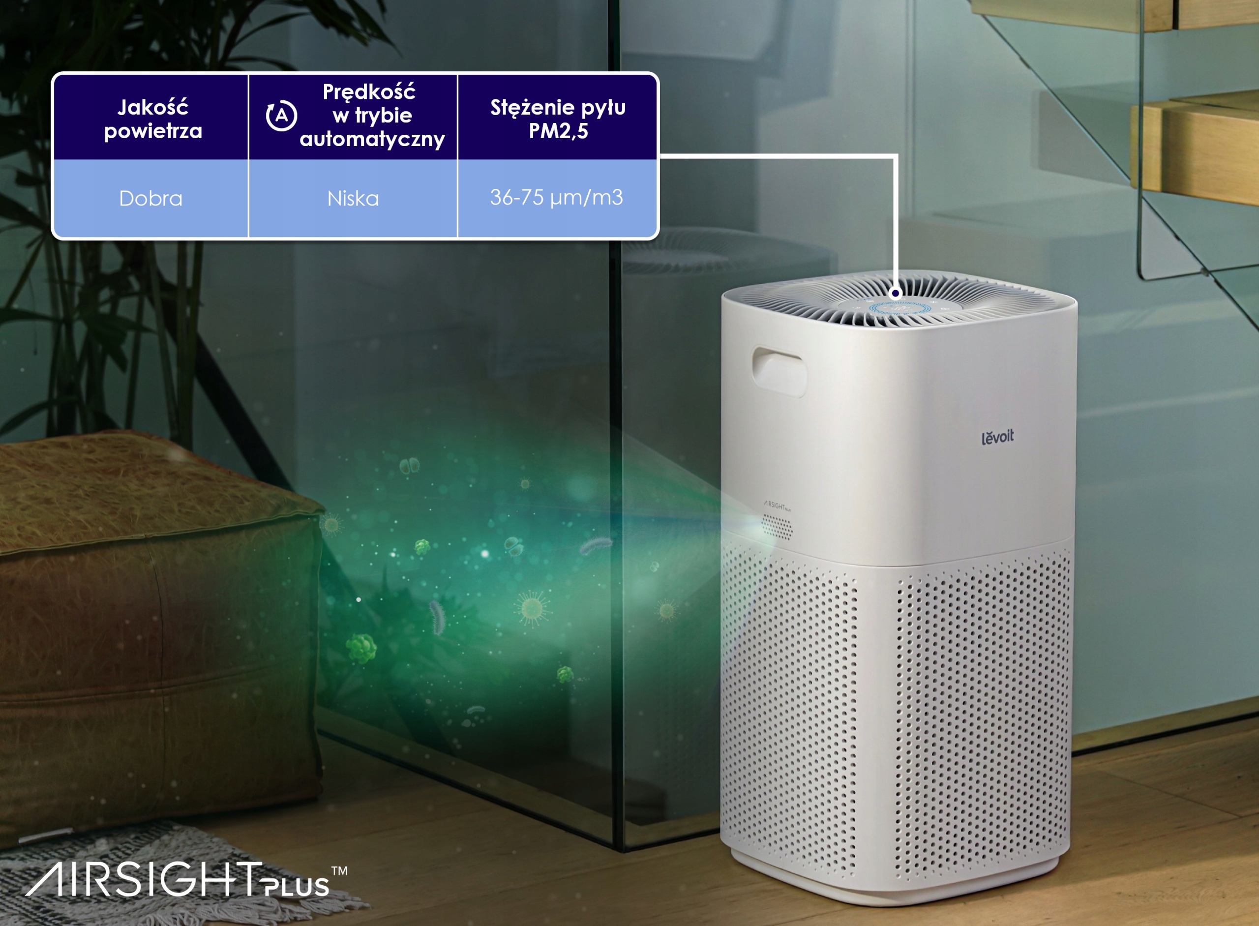 - 4 уровня качества воздуха, интеллектуальное обнаружение загрязнений с контролем на дисплее или смартфоне.