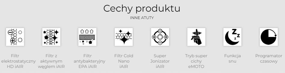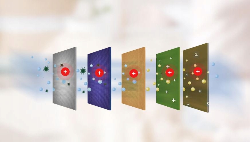 5-ступенчатая обработка воздуха происходит в очистителе. CLEO оснащен композитным фильтром 4 -в 1, где в одном корпусе есть фильтры: электростатический HD IAir, антибактериальные EPA E12 E12, с активным уголью в Иаире и холодным холодным нано -яир. Последняя, пятая стадия очистки - дополнить воздух негативными ионами.