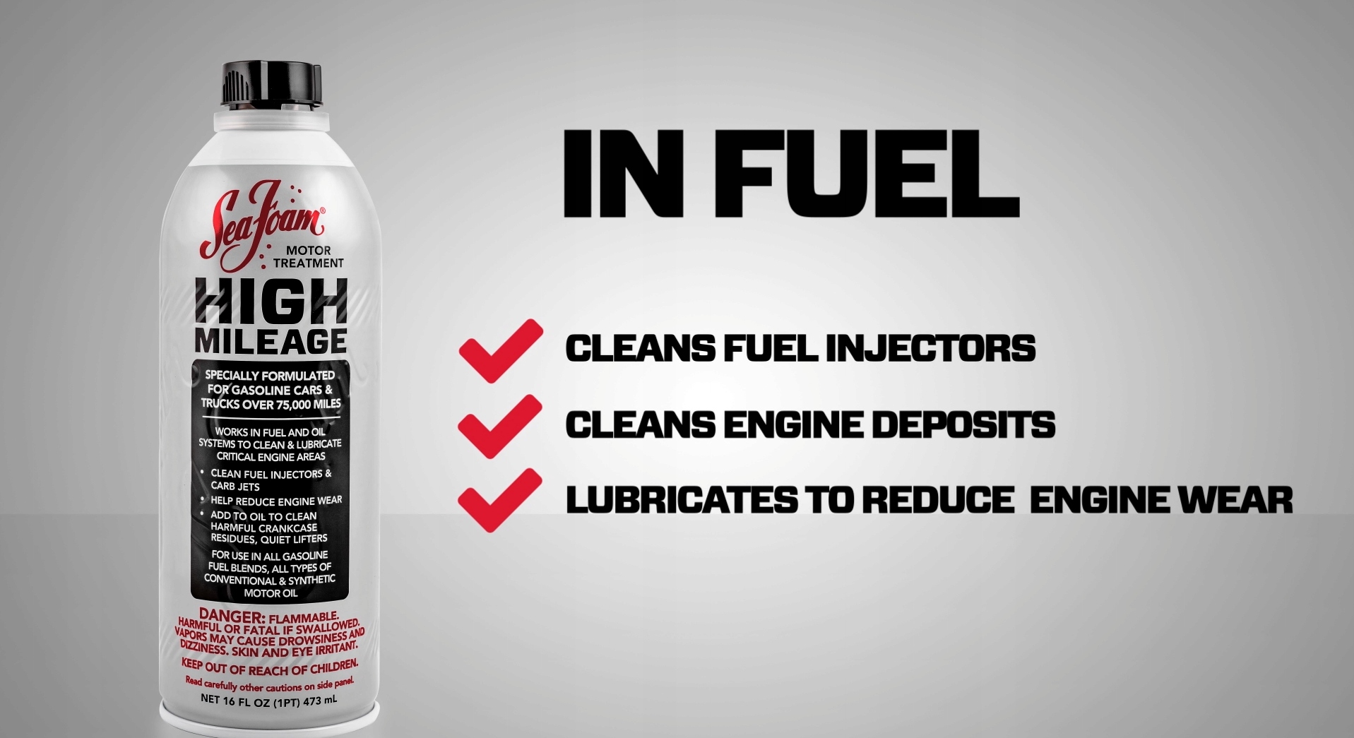 Sea Foam High Mileage разработан специально для бензиновых легковых и грузовых автомобилей с пробегом более 120 000 км.