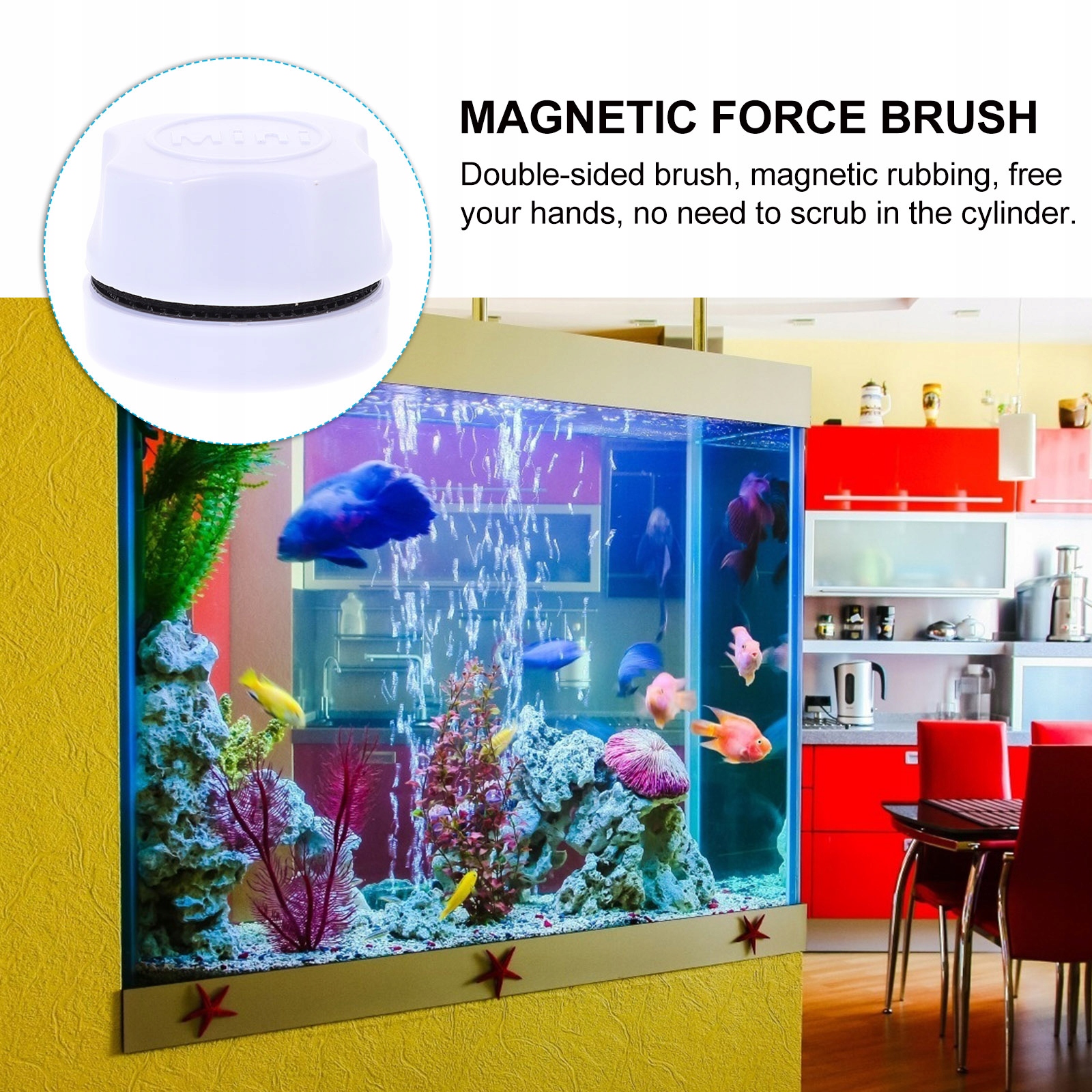 ✔Благодаря сильным магнитным свойствам щеточка трудно выпадет при протирке стекла аквариума.