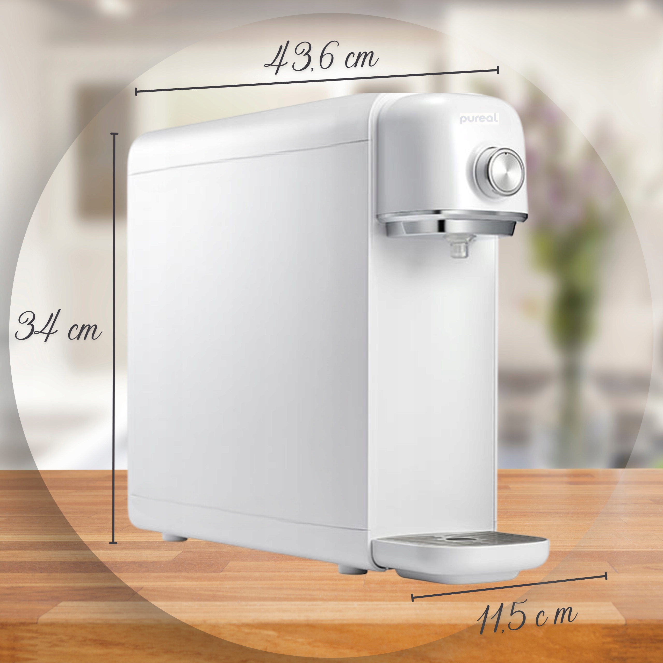 благодаря небольшим размерам (шириной 11,5 см) Pureal Premium будет идеальной даже в на самых маленьких кухнях . Он может быть установлен на стойке, что не требует специализированных знаний или инструментов. Отсутствие необходимости подключения к электричеству также является высокой энергосбережением , идеально подходит для домов с ограниченным количеством электрических розеток.