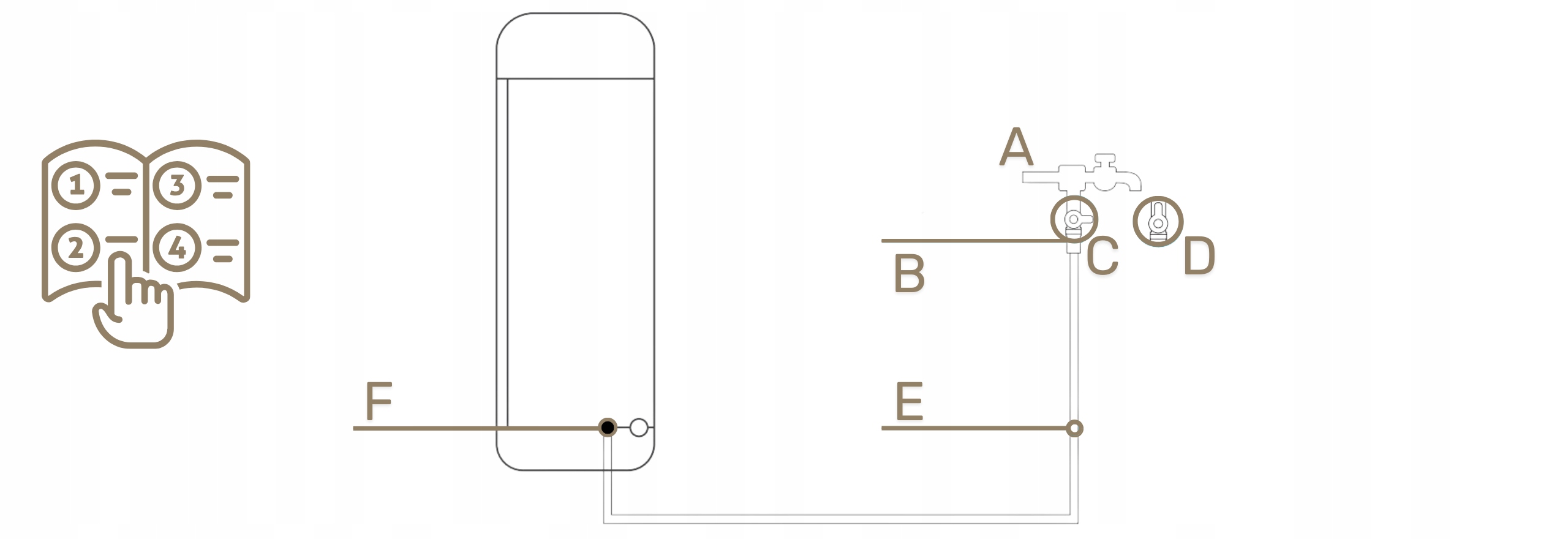 · f -водный класс с холодной водой. Клапан должен быть закрыт перед установкой. Это может повредить фильтр воды при подключении к горячей воде.