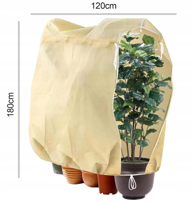 Конструкция на шнурке. Крышка растения оснащена регулируемым шнурком, который можно затянуть, чтобы предотвратить выдувание мешка с антифризом. Защитите свои растения от мороза, ветра и сильного дождя, а также защитите мешок с растениями в горшках от птиц, насекомых и других вредителей.