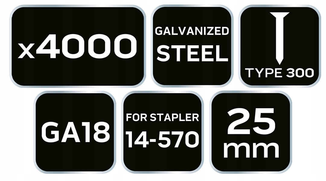 Гальванизированные гвозди для пневматического стиплера (14-570), GA18, тип 300 (F), длина 25 мм, 4000