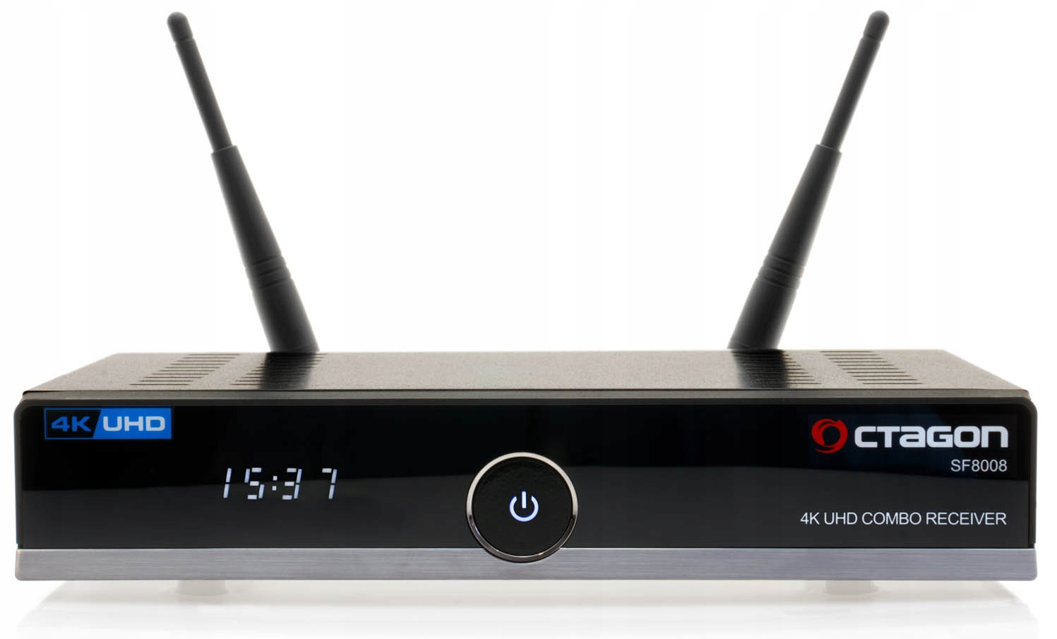 Комбо-ресивер Octagon SF8008 4K UHD предлагает два стационарно установленных тюнера DVB-S2X Sat и DVB-C/T2 и характеризуется, прежде всего, огромной производительностью (15 000 DMIPS) и молниеносным временем переключения. Сердцем приемника является чипсет Hisilicon Hi3798MV200 Huawei с четырехъядерным 64-битным процессором (4x 1,6 ГГц). Плата оснащена 8 ГБ флэш-памяти eMMC и 1 ГБ оперативной памяти DDR4.