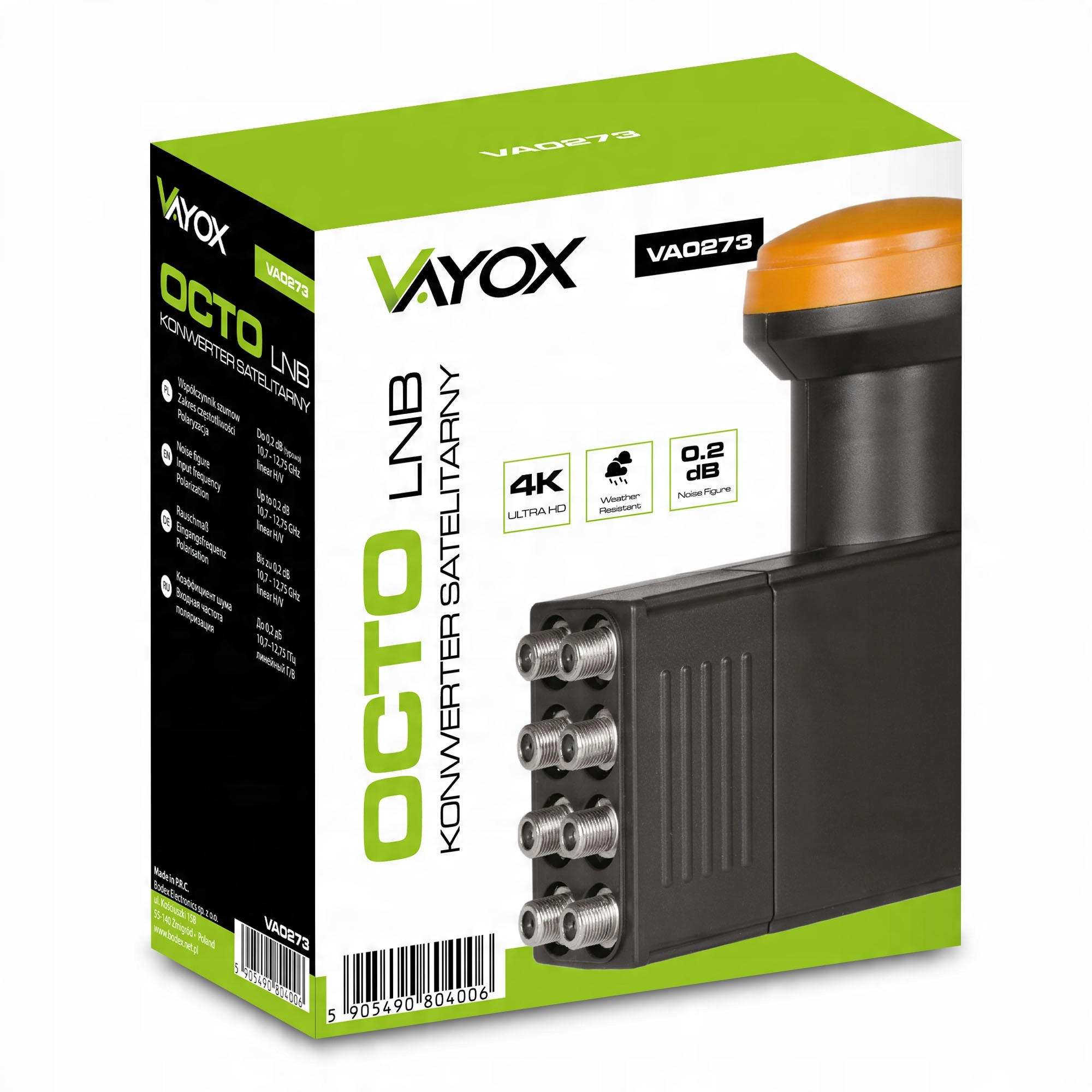 СПУТНИКОВЫЙ КОНВЕРТЕР OCTO 4K НА 8 ВЫХОДОВ POLSAT NC+ РАЗЪЕМЫ + КРЫШКА VAYOX