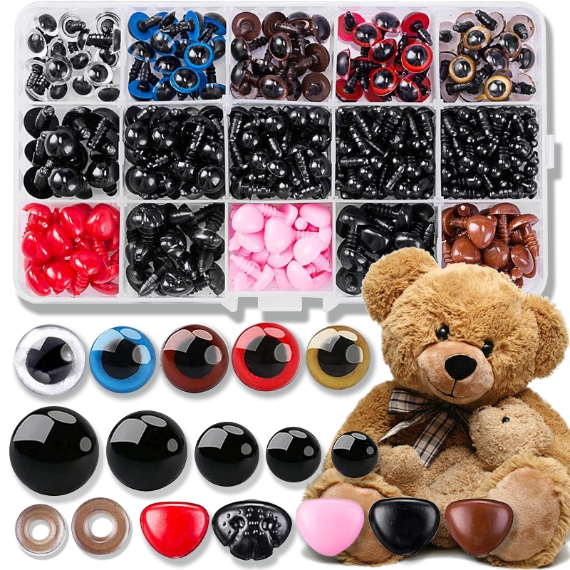 Набор БЕЗОПАСНЫХ ГЛАЗ ДЛЯ ИГРУШЕЧНЫХ ТАСЛИНОВ 560 шт. ФУТЛЯР ДЛЯ ГЛАЗ И НОСОВ 6-14мм