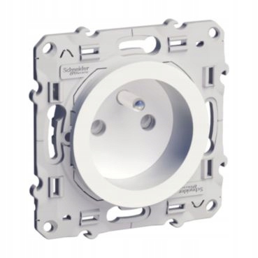 Одиночная розетка (2P+PE) с заземлением и белыми безрезьбовыми клеммами, серия Odace Schneider Electric, каталожный номер S52D059. Преимущества розетки: