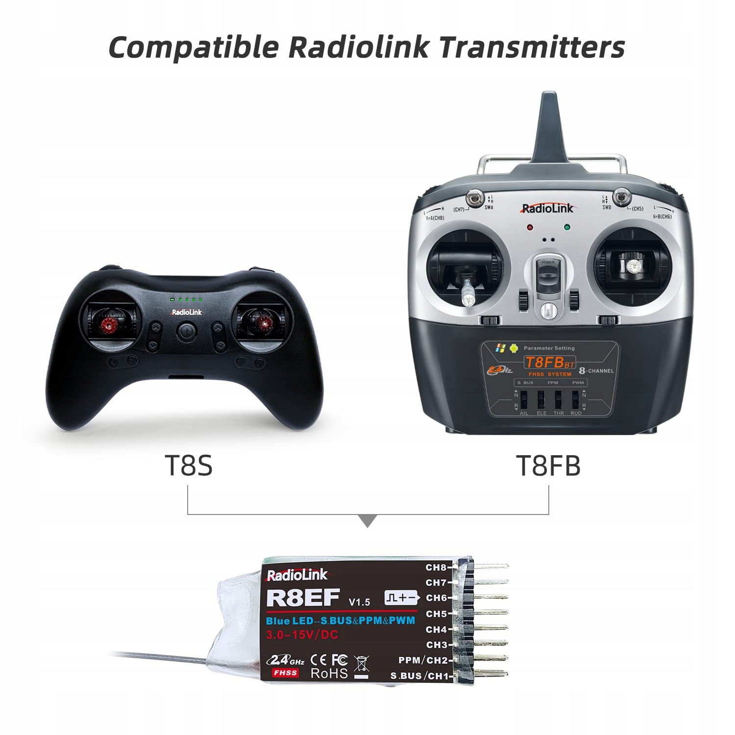 ODBIORNIK RC RADIOLINK R8EF SBUS/PPM/PWM T8FB T8S
