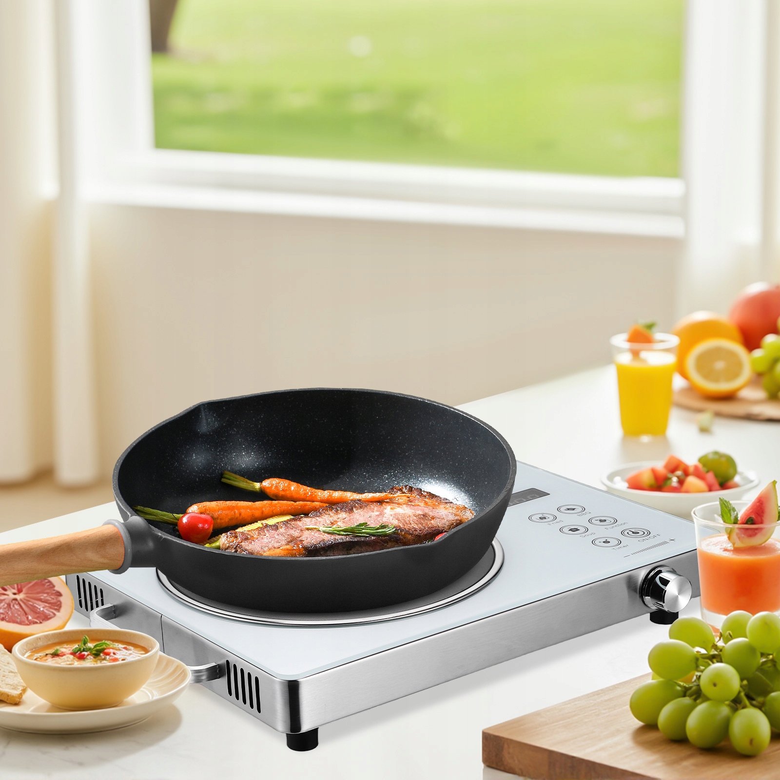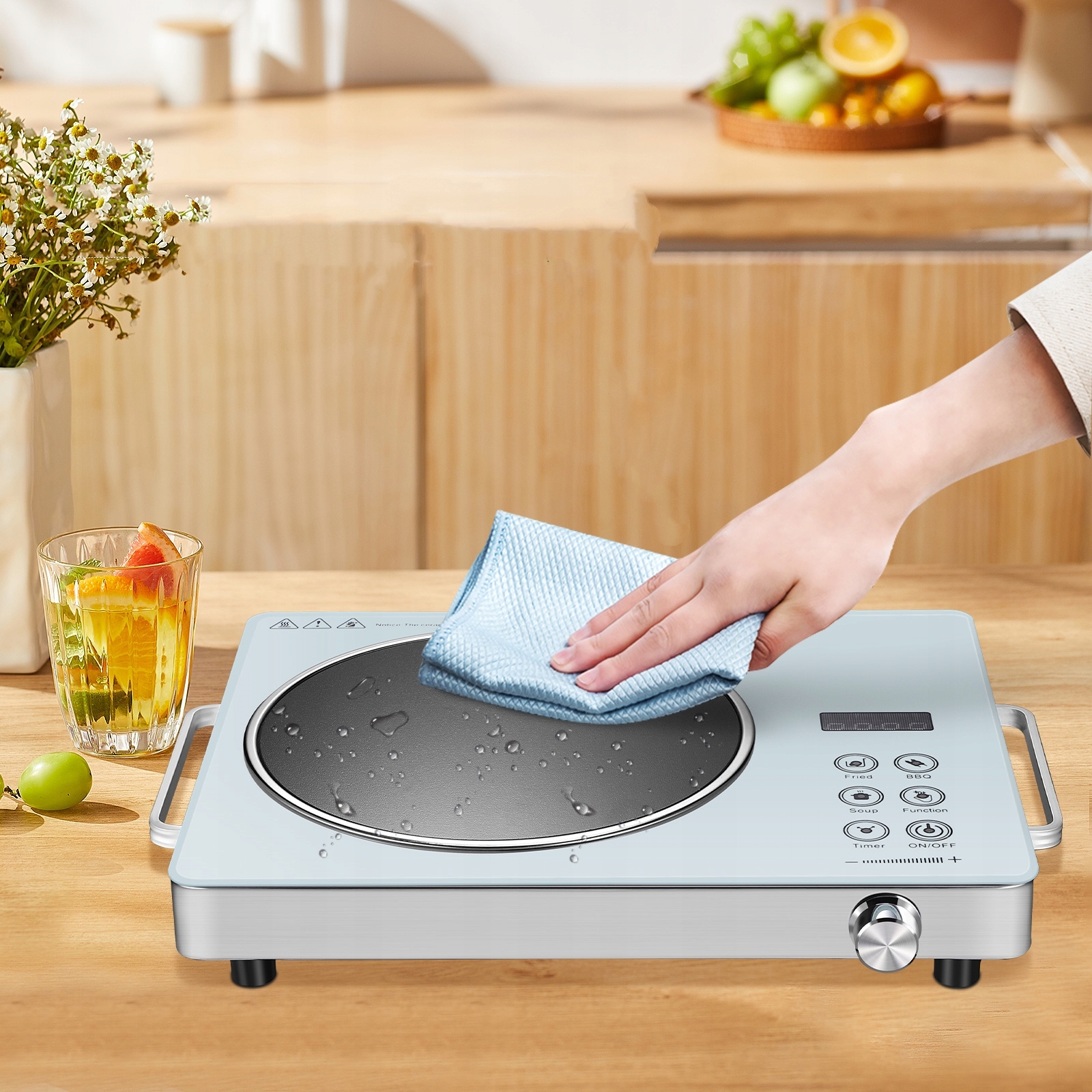 ta Портативная индуктивная кухонная тарелка Сочетает в современном стиле с эффективной производительностью. Shiply Digital Touch Interface обеспечивает точный контроль температуры, а прочная поверхность, изготовленная из микрокристаллической керамики, означает, что чистка не требует усилий. Идеально подходит для небольших кухонь, офисов, комнаты в общежитии или кемпинга, эта кухонная тарелка предлагает быстрое, равномерное отопление для всех потребностей приготовления