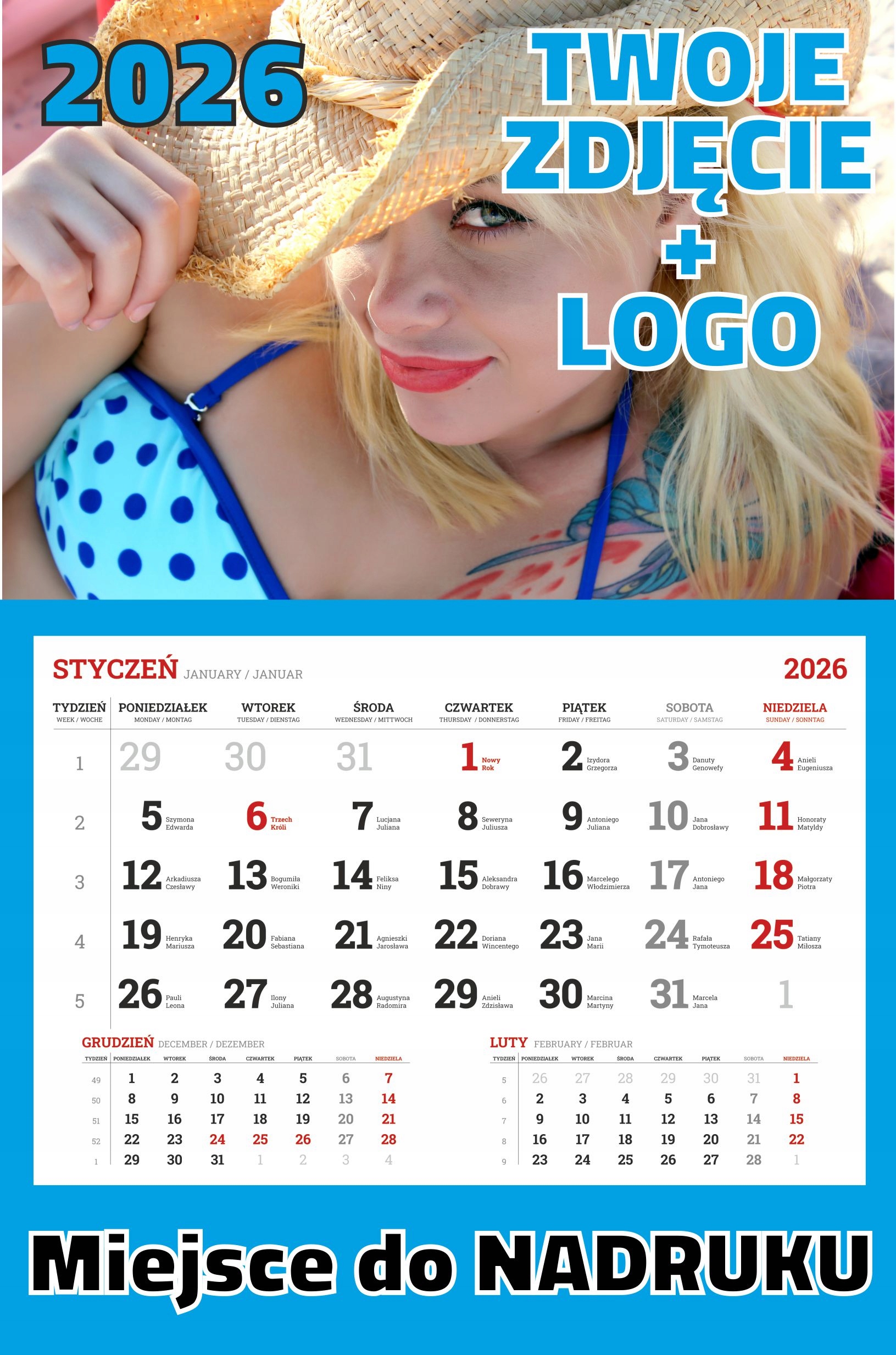 Голова календаря / задняя часть напечатана в полном цвете , что позволяет любой графический дизайн, размещение персонажей компании, фотографии, тексты в любых цветах. Подложка, используемая для печати, представляет собой специальное картон Аляски с весом 250 г, что гарантирует очень хорошее качество цвета . Добавление используемой флэш -фольги явно оживляет цвет и в то же время увеличивает долговечность календаря. В верхней части головы есть отверстие, которое позволяет вам приостановить календарь. Верхний край календаря дополнительно потерян и приклеен, что укрепляет его жесткость. В середине календаря, над календарем, большая линия работает, благодаря которой легко сложить пополам. Голова календаря в то же время его спина - календарь приклеен к голове в нижней части.
