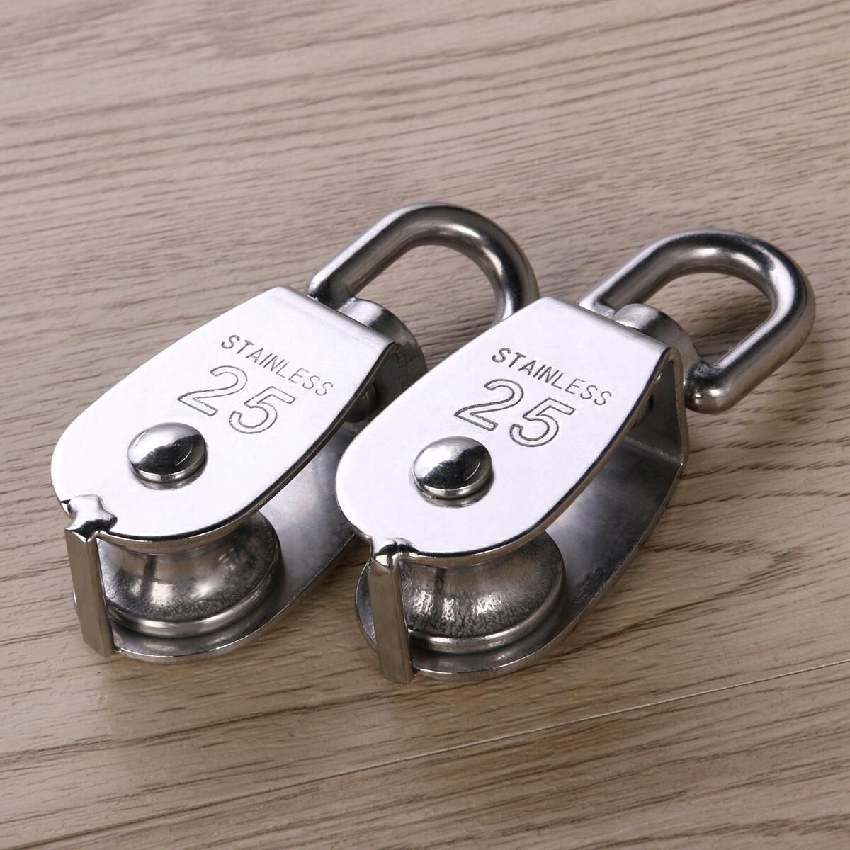 ✅Пара *Одиночный блок шкива UEETEK 25 мм в рулоне, шкив из нержавеющей стали 304, нагрузка 400 кг, серебро