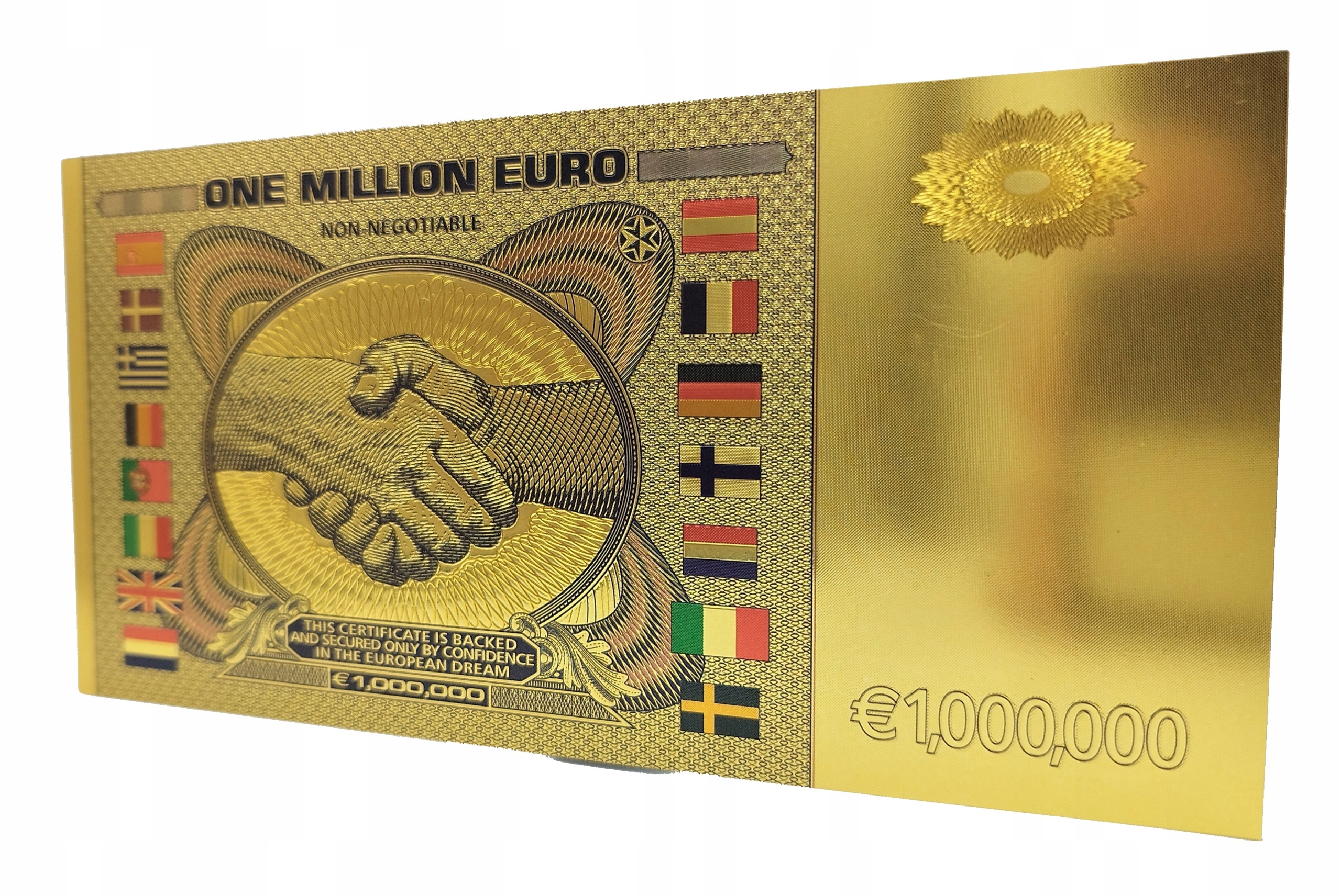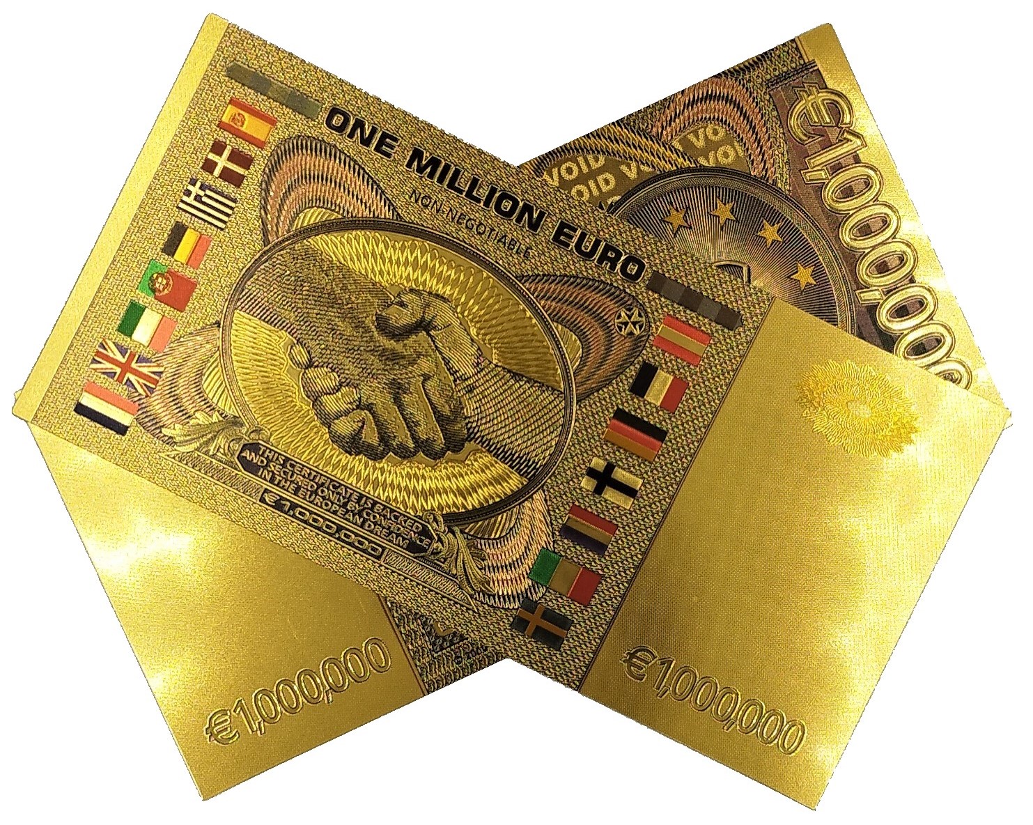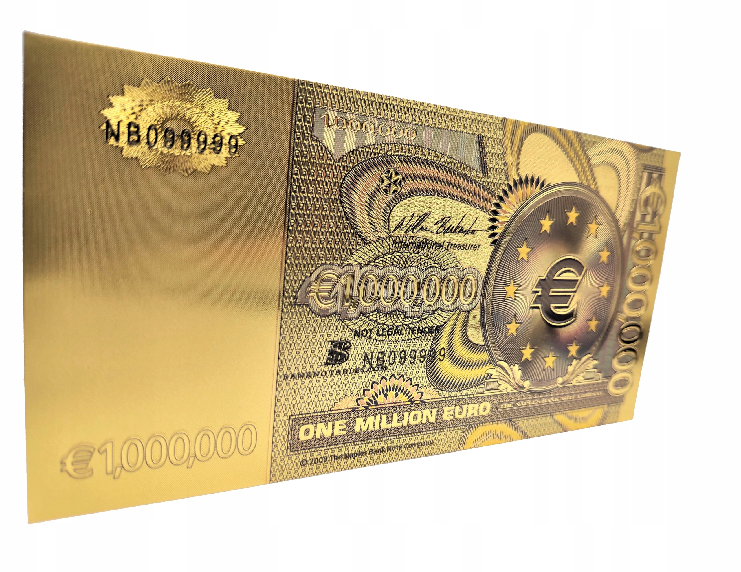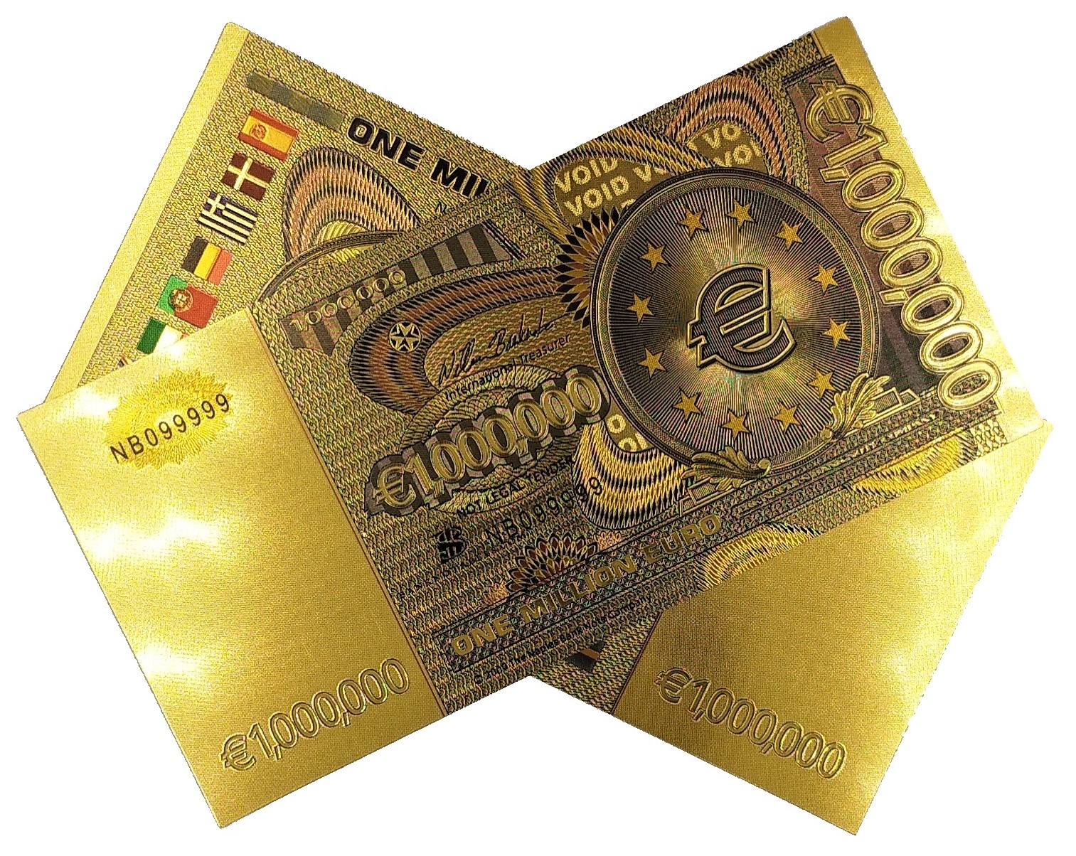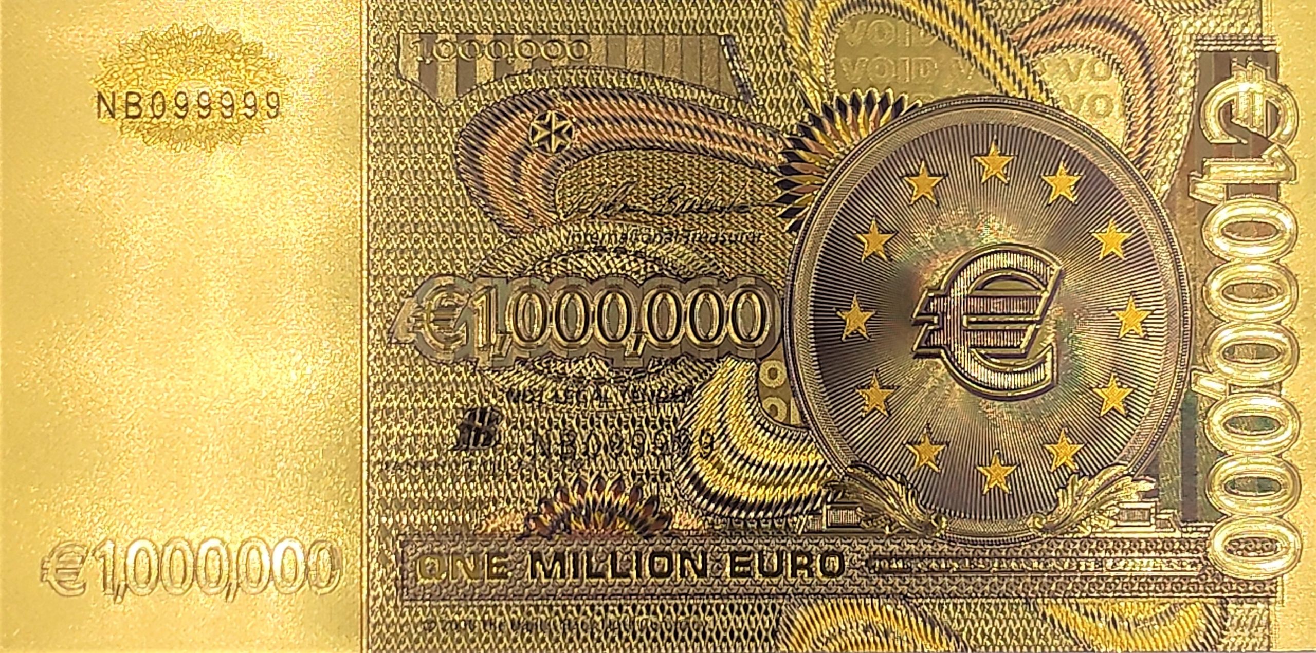 ПОЗОЛОЧЕННАЯ БАНКНОТА ОДИН МИЛЛИОН ЕВРО, ЦВЕТНАЯ ВЕРСИЯ