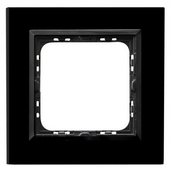 Рамка из черного стекла с черной пластиковой внутренней рамкой из серии Impresja Prestige, совместимая с элементами серии Impresja, позволяющая устанавливать как вертикально, так и горизонтально.