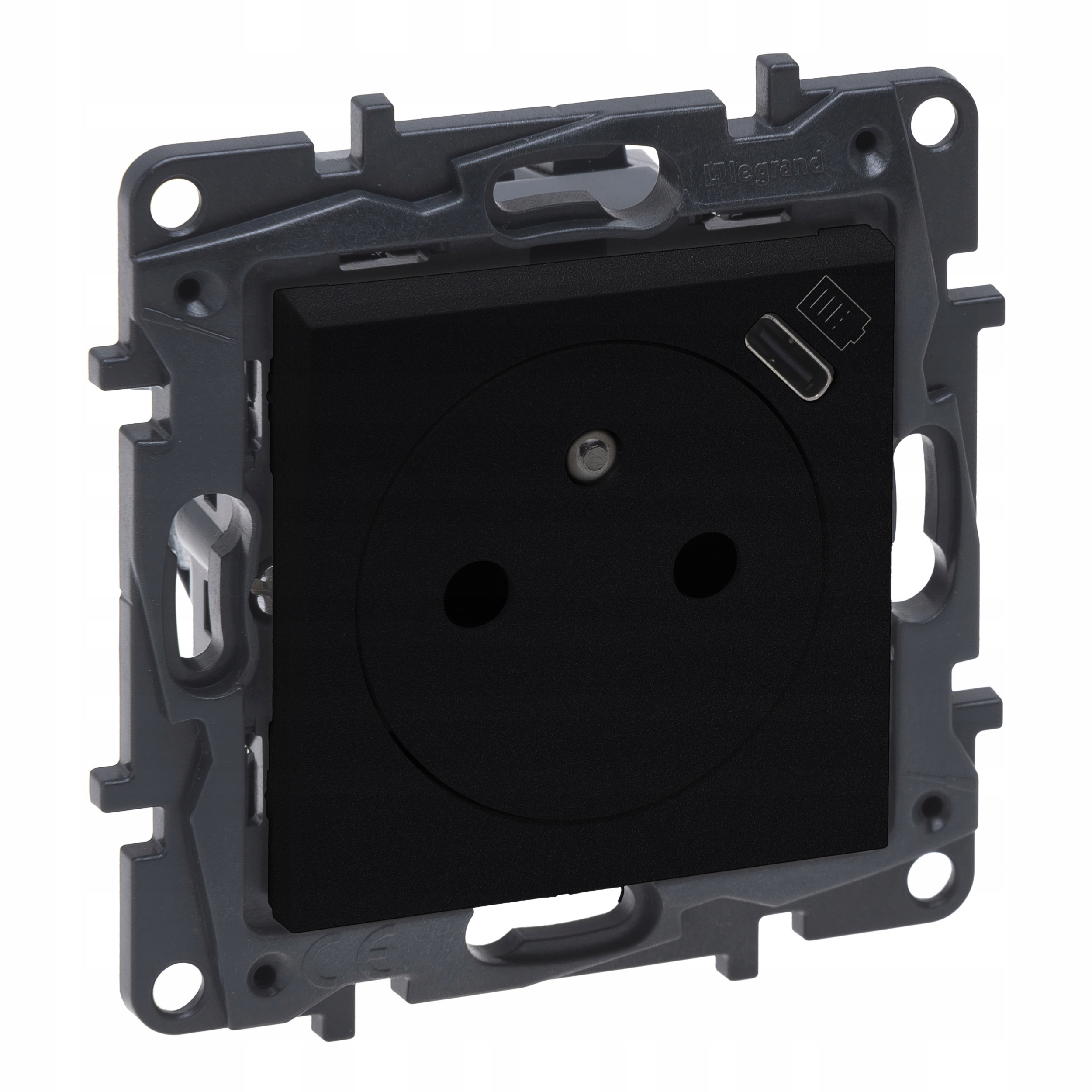 Одиночная розетка с заземлением и зарядным устройством USB C Black Legrand Niloe Step — 863538