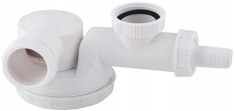 Из белого полипропилена, плоский сифон, предназначен для одночашных моек. Он позволяет грязи стекать в канализацию и останавливает неприятные запахи. Оснащен подключением для шланга слива воды из стиральной или посудомоечной машины.