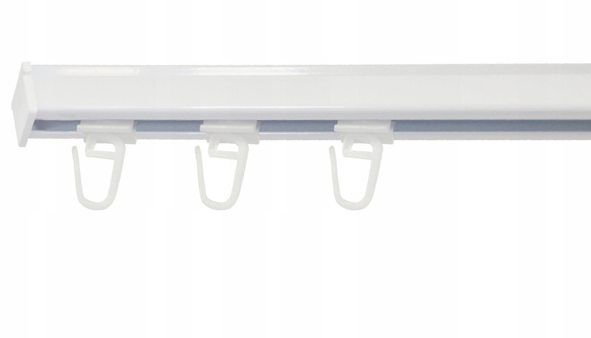 - 1 направляющая белая алюминиевая рейка (карнизы длиной до 250 м см. поставляем в комплекте). целиком, а выше 250 см - двумя равными частями. Например, карниз 400 см состоит из 2-х реек длиной 200 см)
