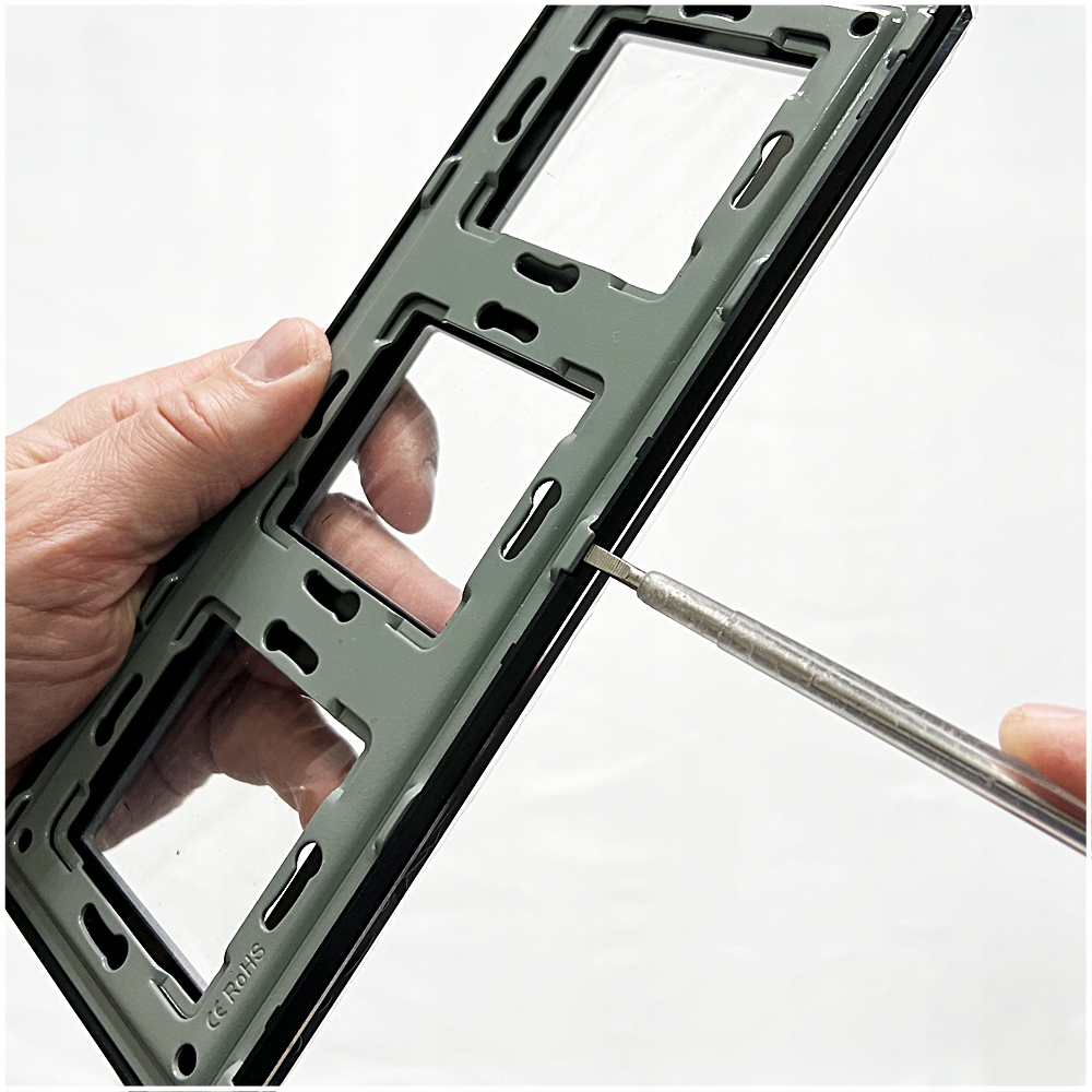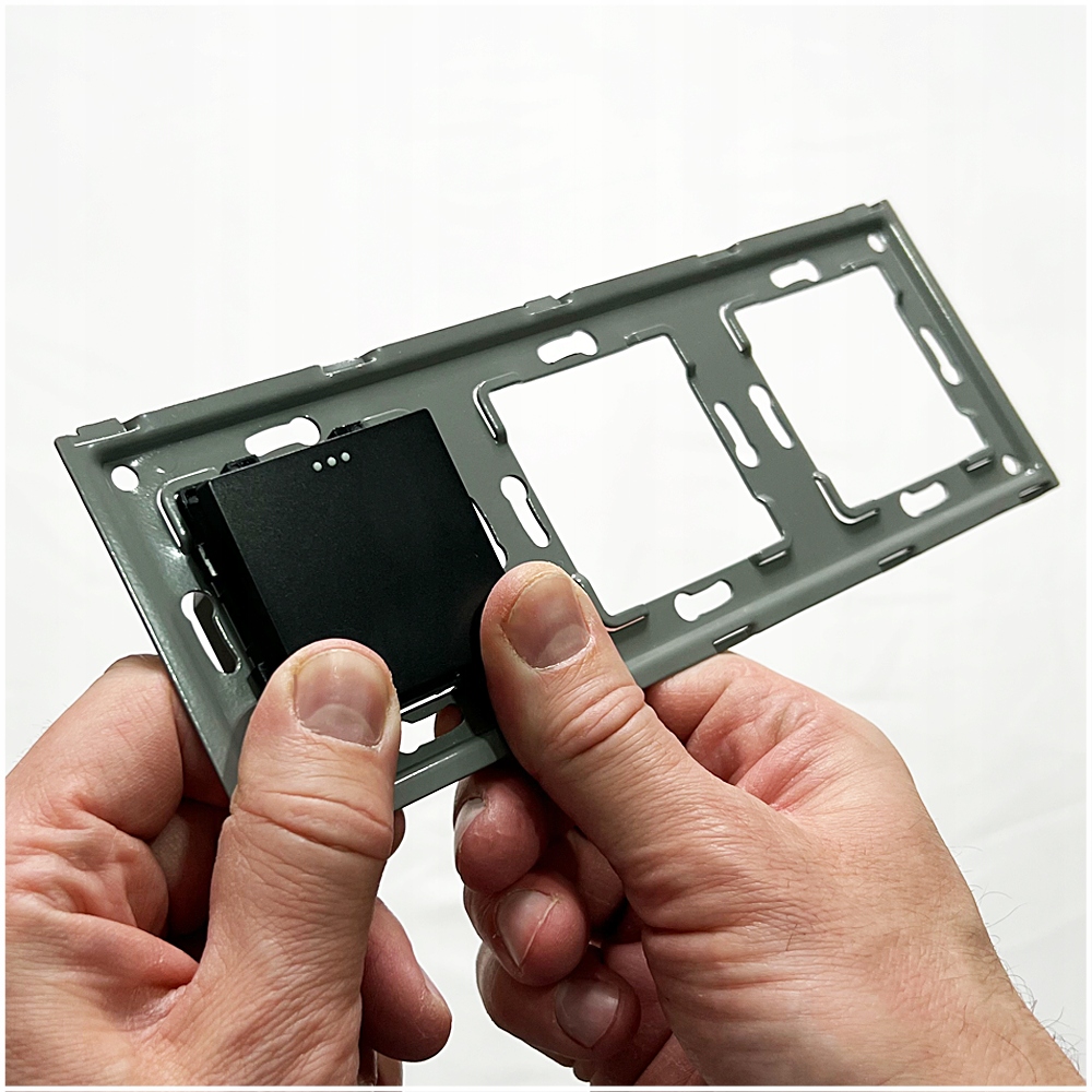Монтаж модуля в кадре очень проста. Картинки включают в себя пример монтажа модуля в тройном кадре. Все модули (гнезда, переключатели) в кадрах установлены одинаково: