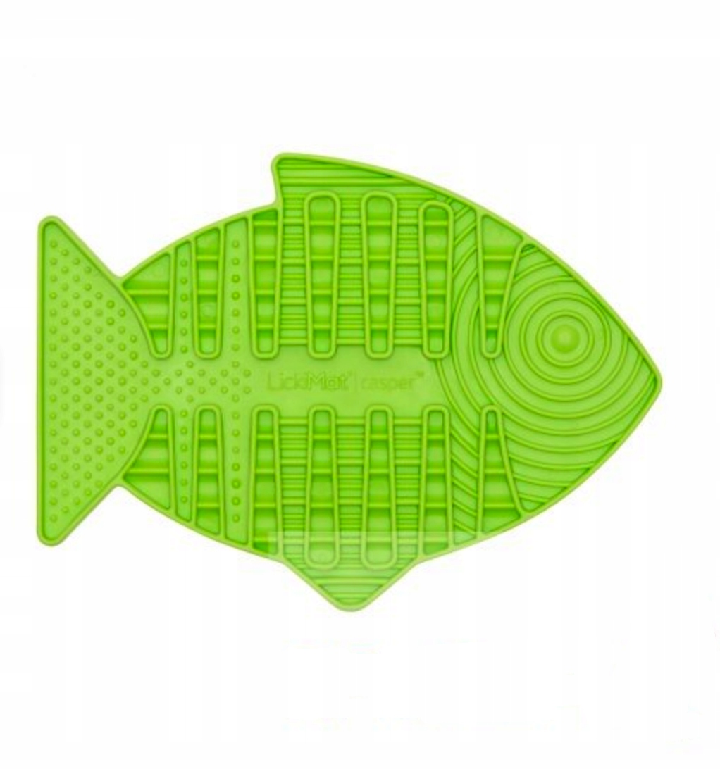 Lickimat® Casper ™ - первый и один из двух ковриков, посвященных кошкам. Он имеет очаровательную форму рыбы, она плоская, поэтому не раздражает вибрации кошек. позволяет кошке есть пищу в неприятное положение с полным обзором окружающей среды, что помогает снизить стресс и беспокойство во время еды. Lickimat® Casper ™ изготовлен из мягкого пластика, имеет округлый карман и предназначен для подачи как сухой, так и влажной пищи, , а также мягких и жидких деликатесов.