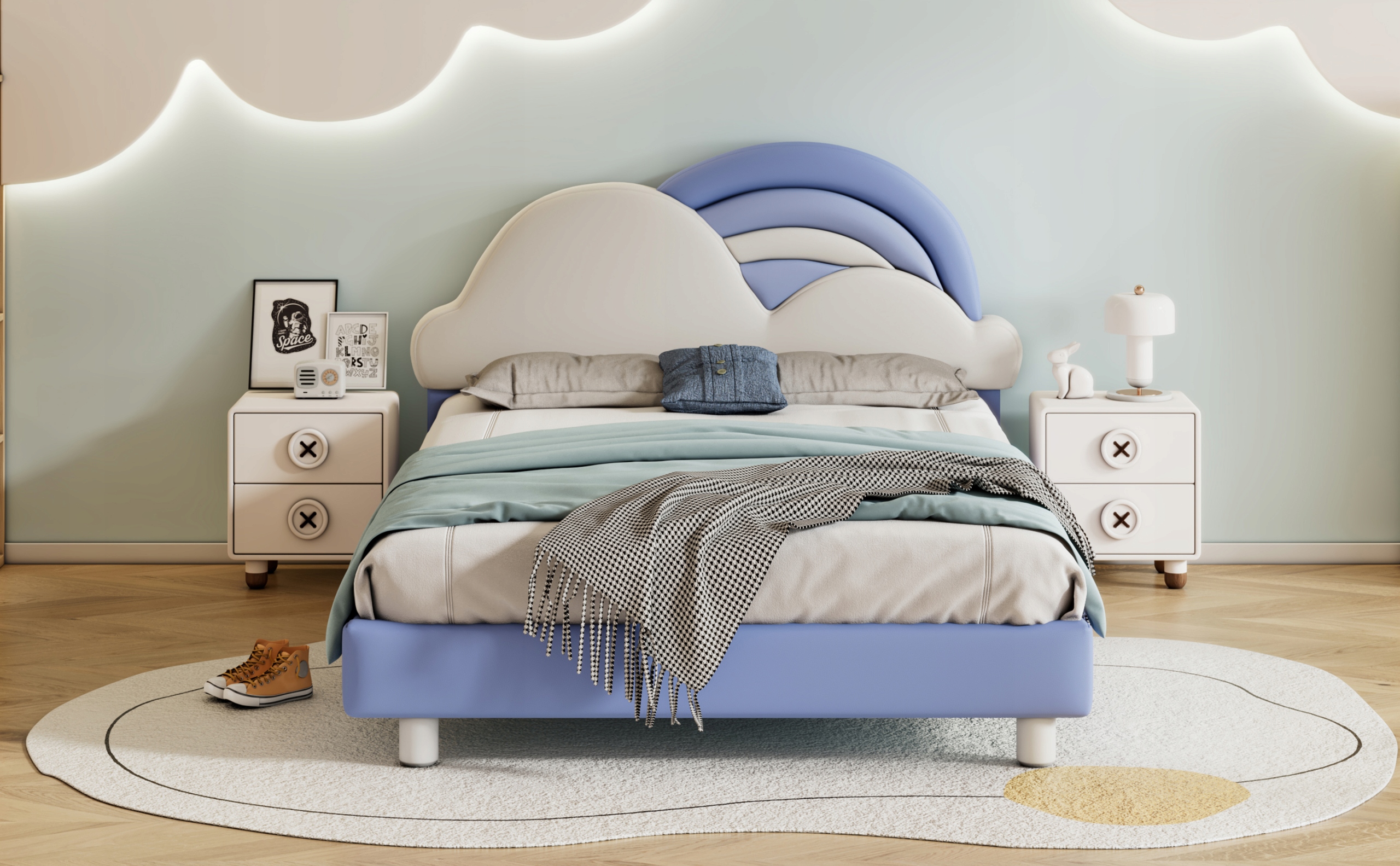односпальная кровать 140x200см, кровать для детей, кровать для подростков, обитая кровать с удобным подголовником радужного облака, рама из деревянных полос, PU, Blue h2> - Это детская кровать в форме радужного облака имеет уникальный дизайн и теплый и красивый вид. Цвета богаты, в том числе розовый и синий, поэтому и мальчики, и девочки могут выбрать цвет, который им нравится.