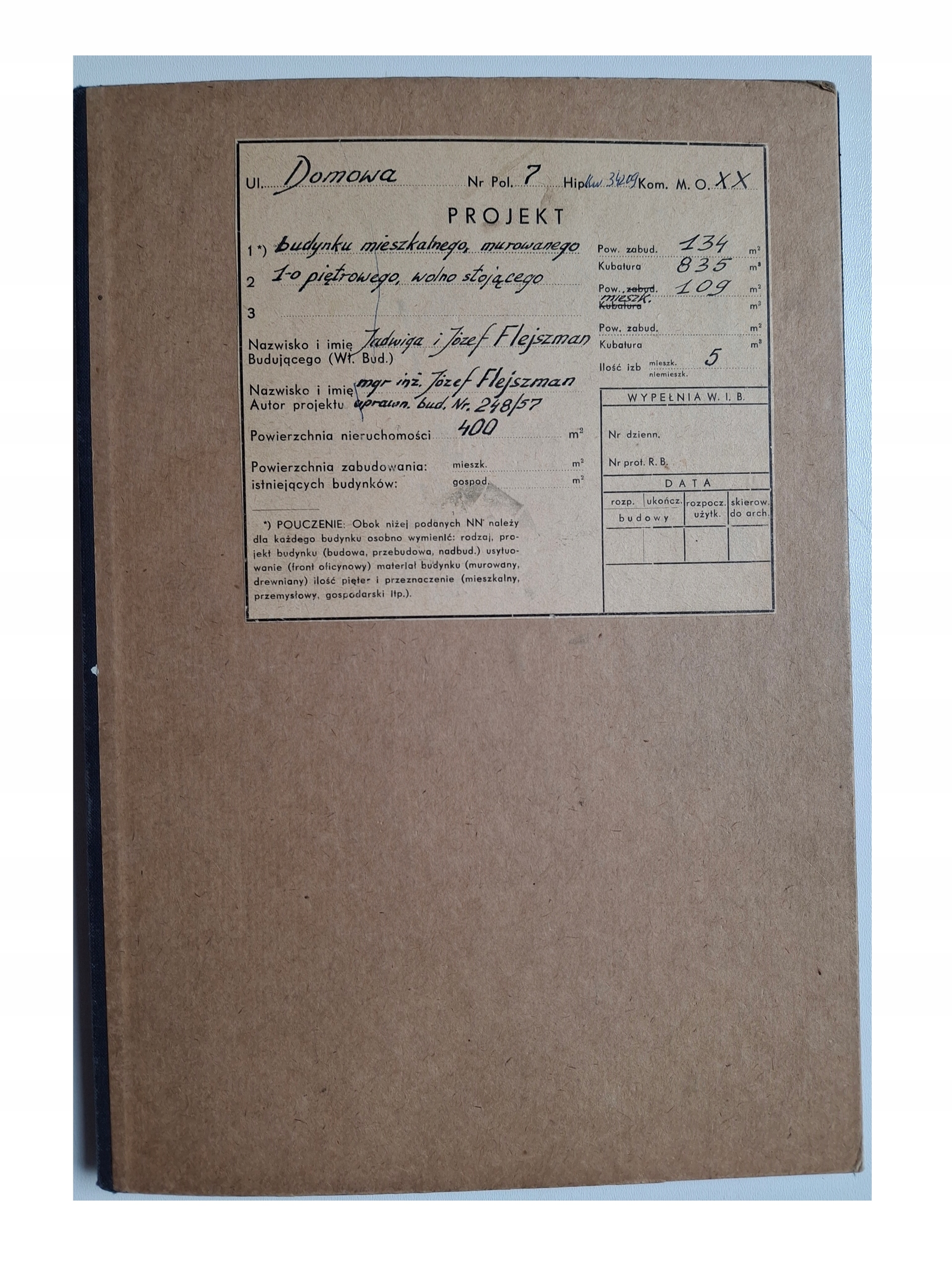 Одиночный план дома на улице Домоуго в Варшаве