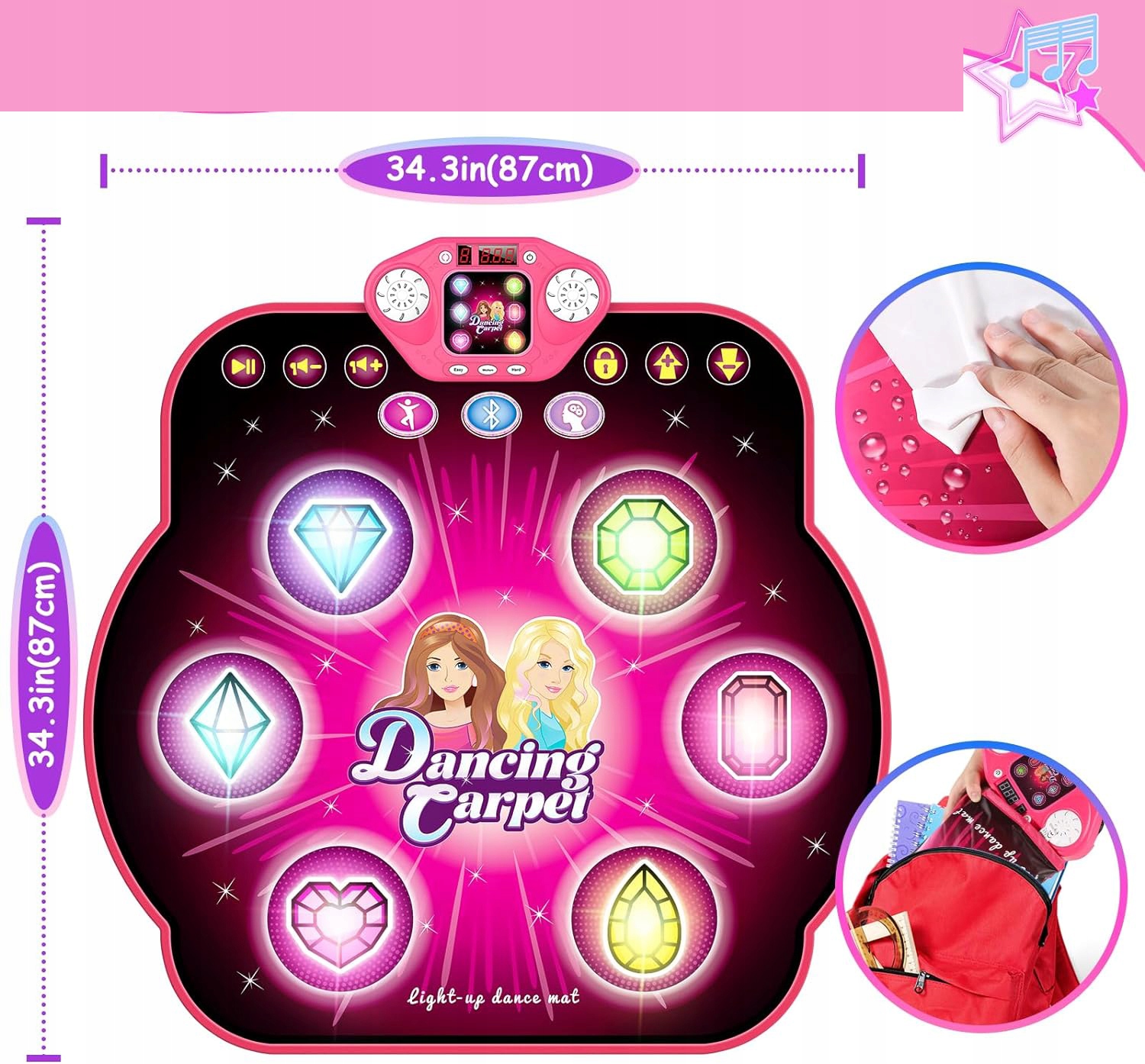 - Он также водонепроницаем. и нескользящий, что обеспечивает долгий срок службы и безопасность во время использования. Наш танцевальный коврик – идеальная игрушка в подарок для девочек от 3 лет.
