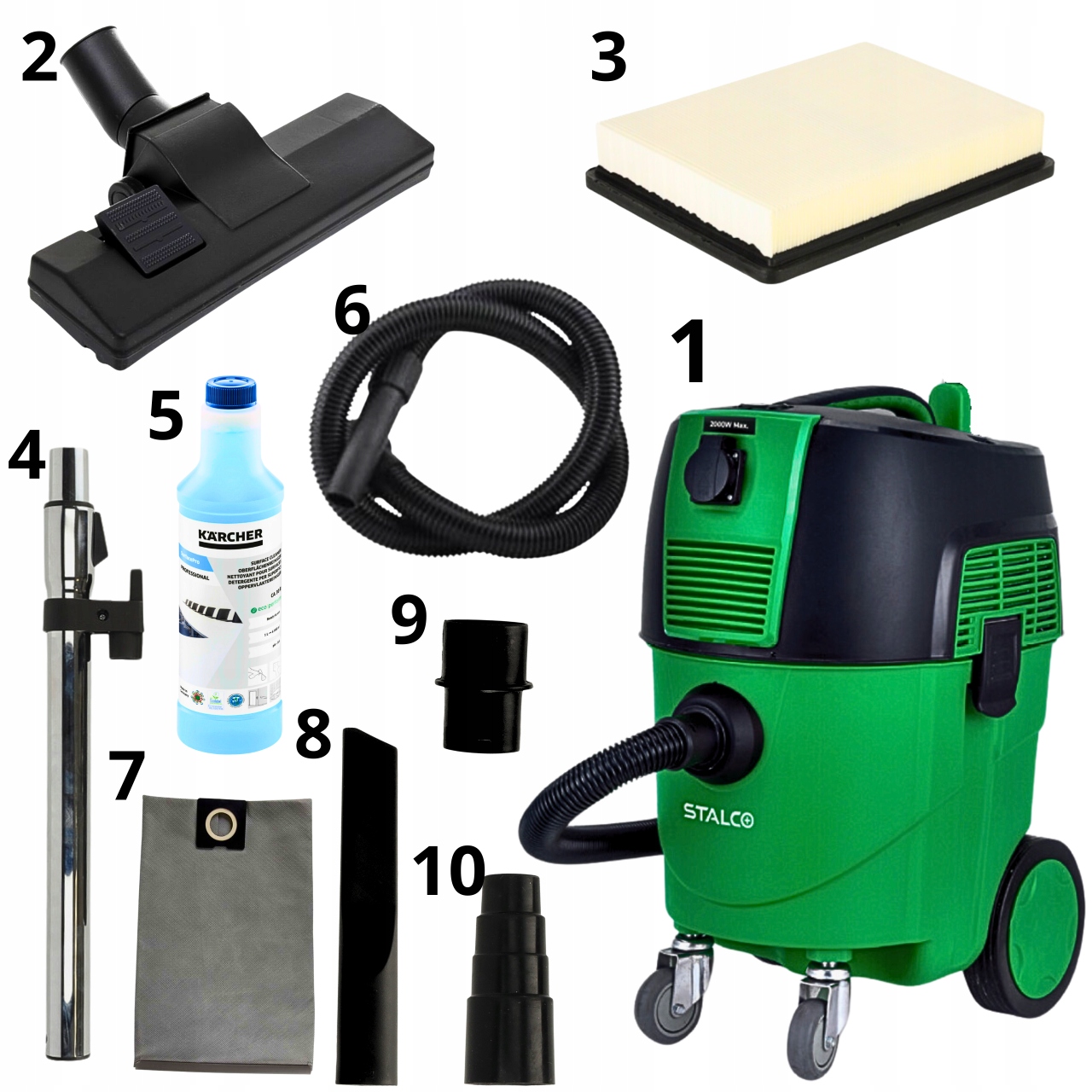 - О: Пылесос STALCO оснащен автоматической системой очистки фильтра, обеспечивающей постоянную производительность и сводящей к минимуму необходимость частого вмешательства пользователя. Однако, несмотря на эту продвинутую систему, рекомендуется регулярно проверять состояние фильтров, чтобы убедиться, что они чистые и неповрежденные. Как правило, фильтры следует заменять в соответствии с рекомендациями производителя или в случае видимых повреждений или снижения эффективности пылесоса.