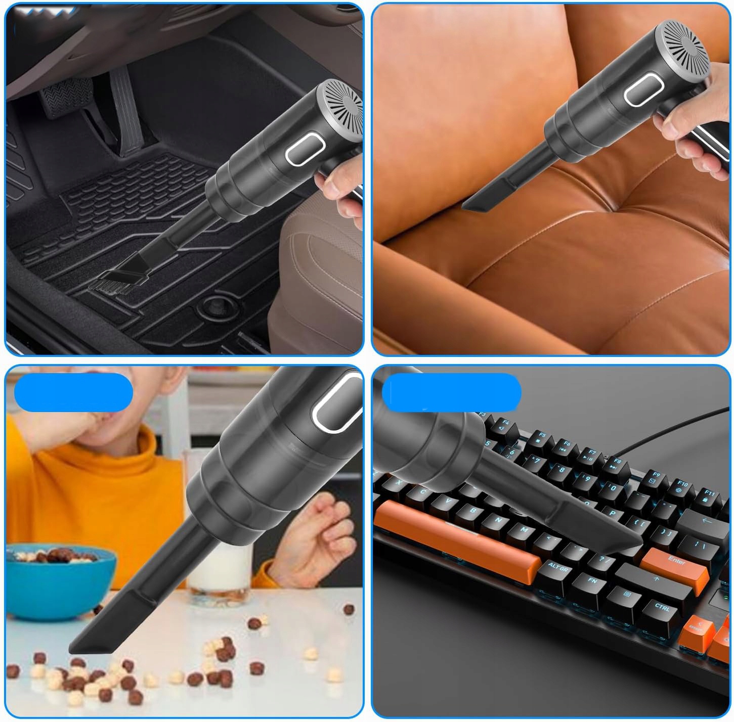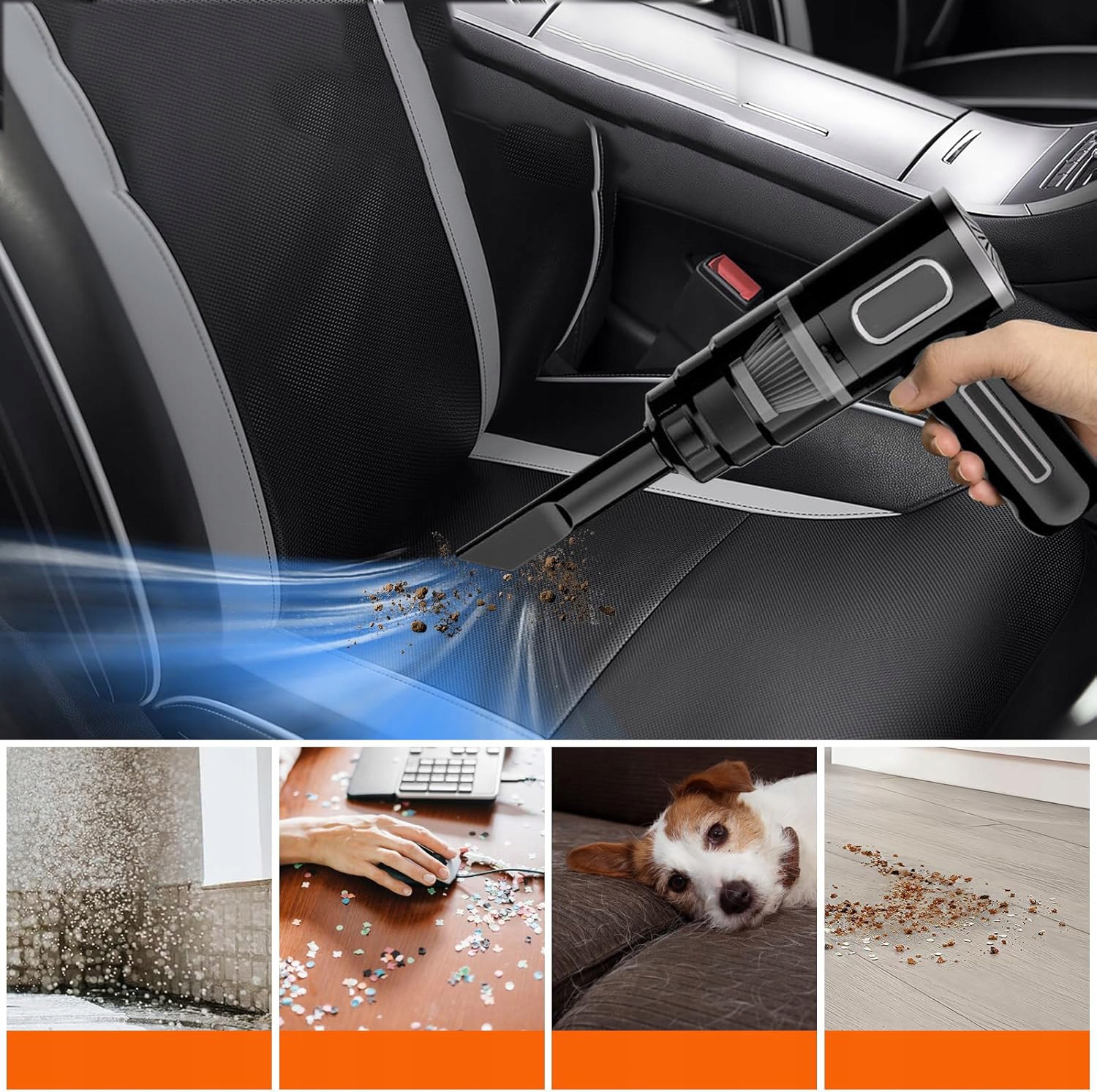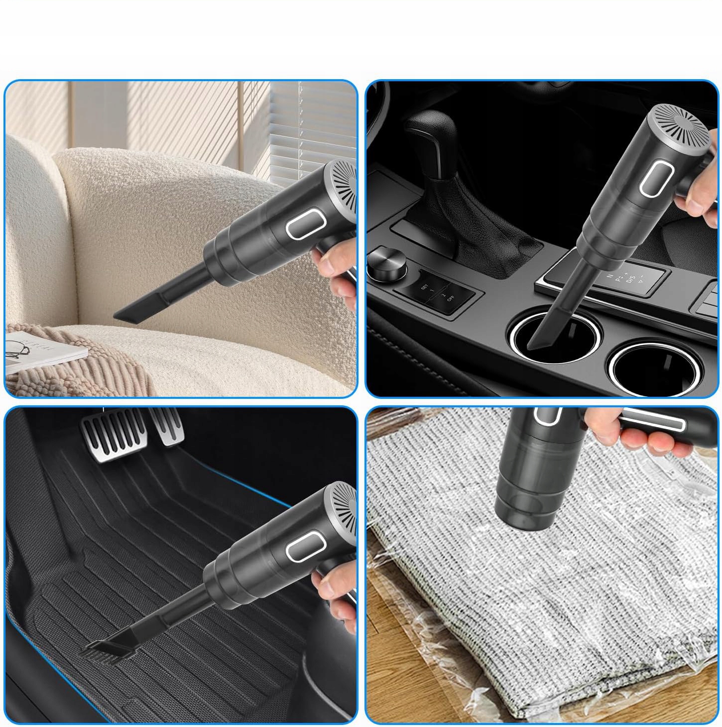 ⏺️⏺️Многофункциональный ручной пылесос:Беспроводной ручной пылесос можно использовать в автомобилей, квартир, офисов и т.д. для чистки салонов автомобилей, диванов, ковров, мебели и клавиатур. Беспроводная конструкция позволяет преодолевать ограничения по пространству и позволяет свободно передвигаться при уборке углов автомобиля, не раздражая веревки.
