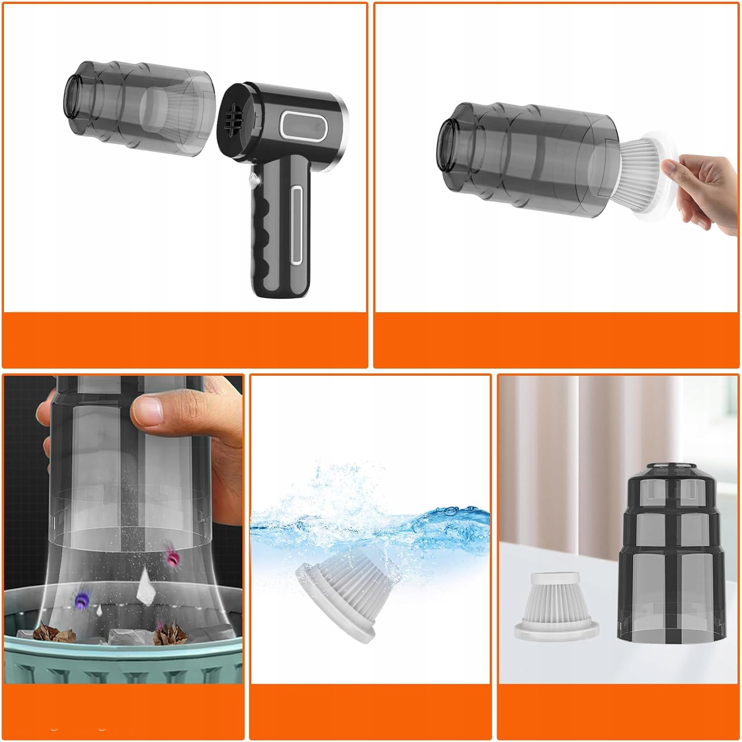 ⏺️⏺️Многоразовый и моющийся фильтр: b> Этот беспроводной ручной пылесос оснащен моющимся HEPA-фильтром, который эффективно фильтрует пыль и мелкие частицы и обеспечивает идеальную мощность всасывания. Регулярная чистка помогает сохранить эффект всасывания. Наш автомобильный пылесос оснащен 2 щеточными насадками и 2 фильтрами для ежедневной уборки.