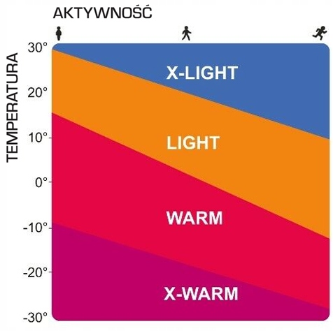 Согласно системе контроля температуры ODLO, браслет Move Light лучше всего использовать при температуре примерно от +15 градусов C. (низкая активность) до примерно - 10 градусов C (высокая активность):