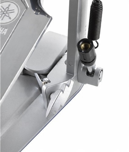 Одним из наиболее функциональных патентов новой подставки Yamaha является система регулировки натяжения пружины, которая, по сравнению со стандартным механизмом, расположенным перпендикулярно земле, направлена под углом прямо к игроку. Это позволяет удобно и эргономично регулировать силу натяжения с помощью ручки, что существенно облегчает данную операцию. Этот патент особенно оценят те, кто часто любит экспериментировать с настройками ножной педали и не любит постоянно перемещать другие элементы установки, чтобы иметь возможность наклоняться к педали, не разбирая ее с большого барабана. Выдвижные противоскользящие шипы перенесены в область пятки, где возникает наибольшее давление во время игры. Крепление к ободу барабана осуществляется с помощью хомута, закрепленного резиной, а зажимная бабочка размещена сбоку платформы для большего удобства пользователя.