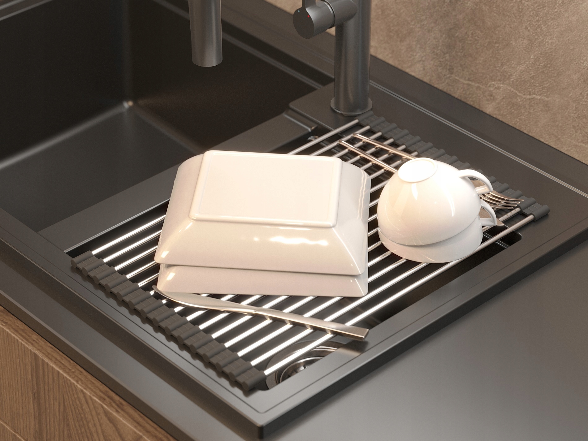 Размераксессуара адаптирован под чашу мойки.