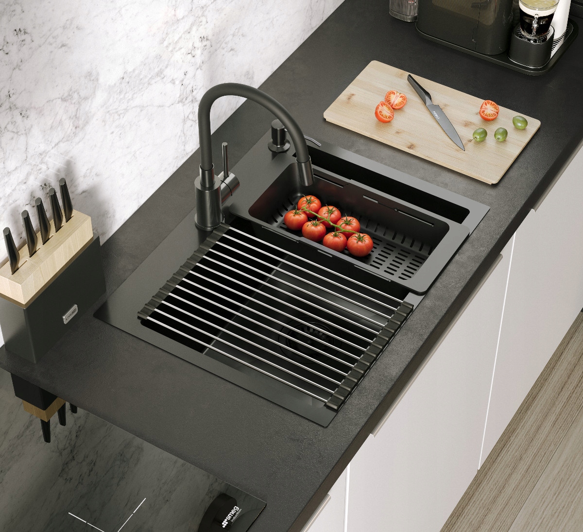 Добавленная в комплект разделочная доска делает ежедневное приготовление еды более удобным и эргономичным.