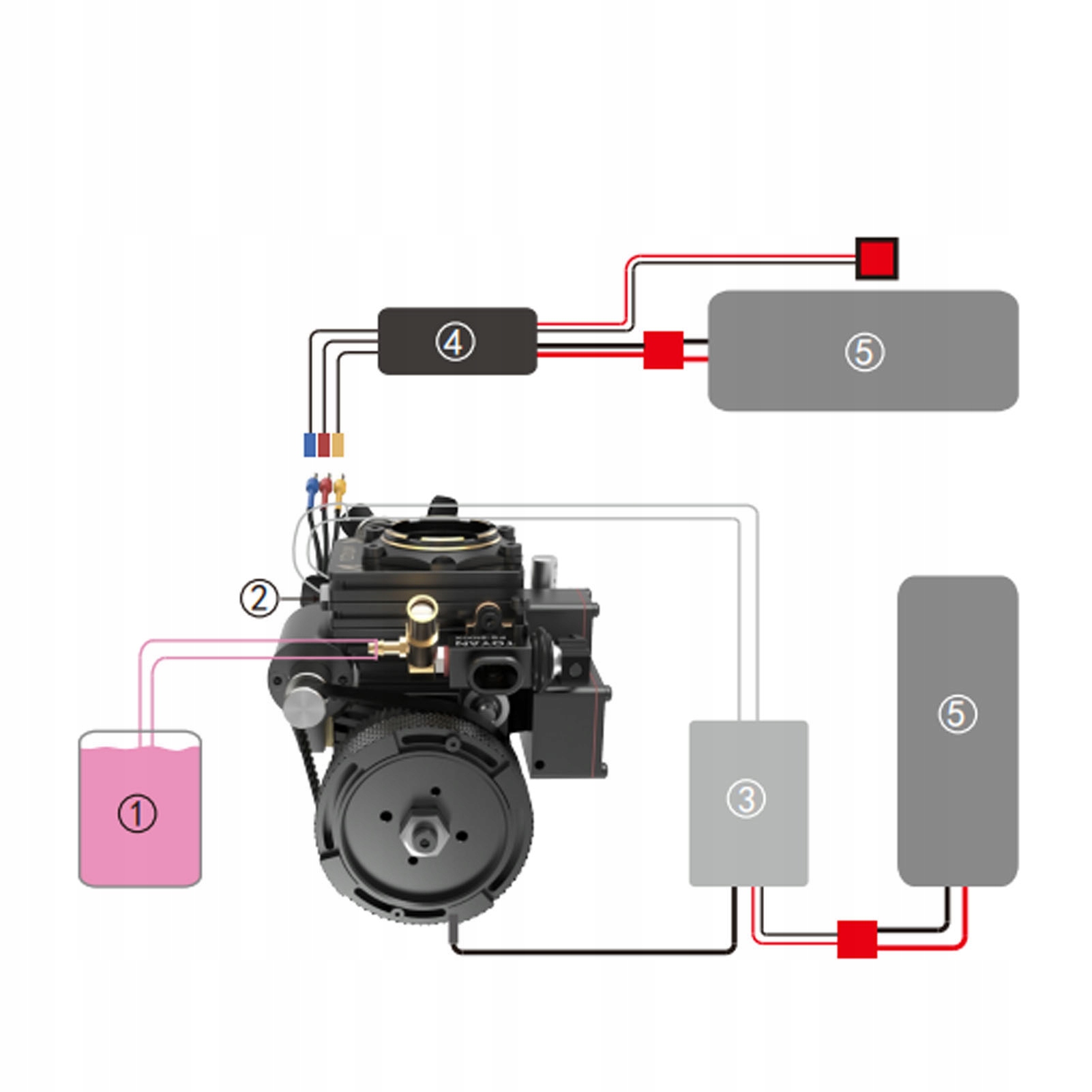 Модель одноцилиндрового 4-тактного двигателя на метаноле TOYAN FS S100AT для моделей лодок с радиоуправлением