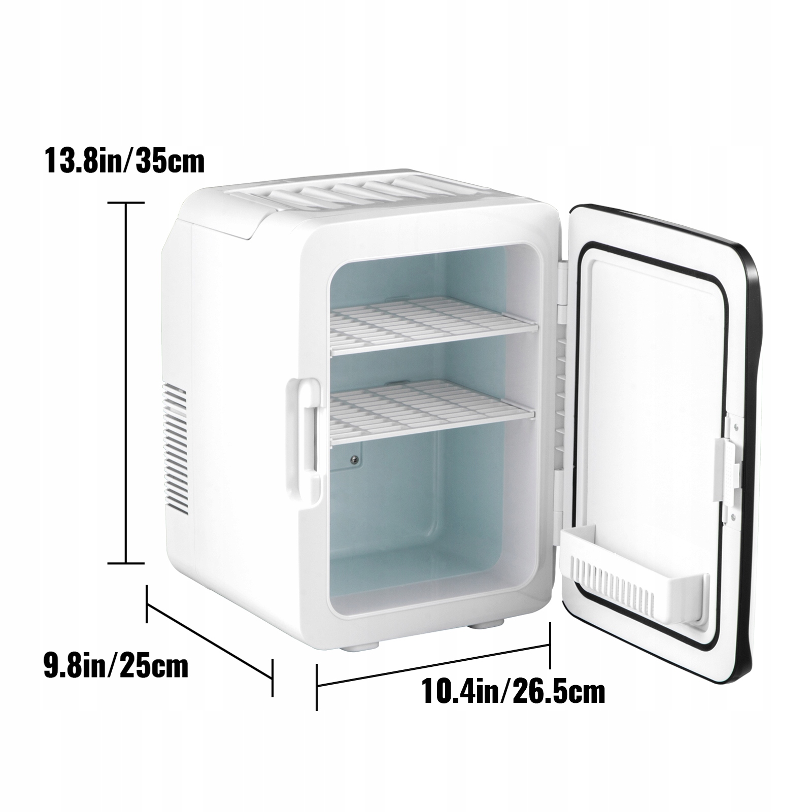Мини-холодильник емкостью 10 литров легко вмещает 12 банок с напитками. Он оснащен двумя съемными полками и одной корзиной-контейнером для удобного хранения предметов разного размера в соответствии с вашими потребностями, таких как косметика, фрукты, молоко, обед и т. д.