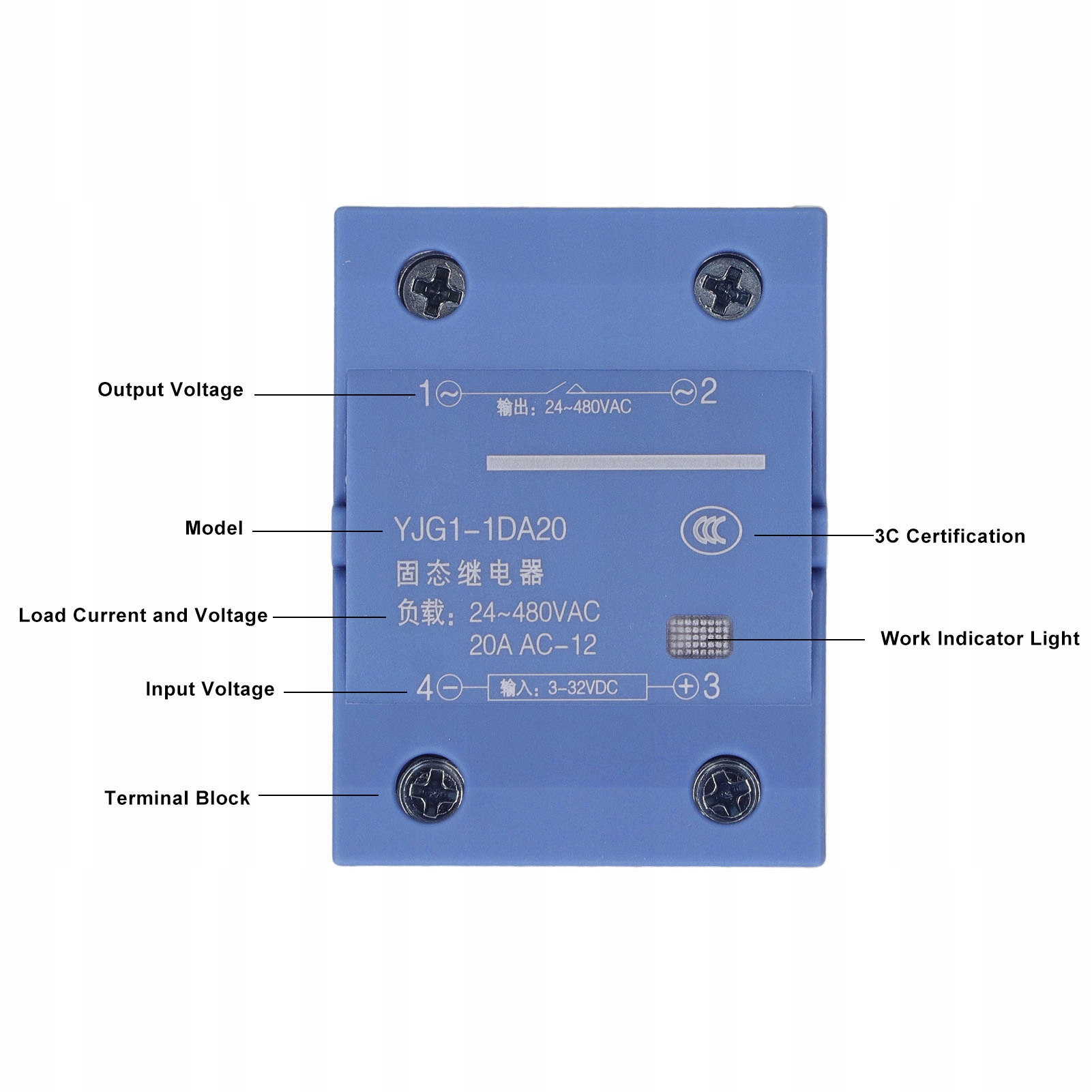1. РЕЛЕ постоянного тока в переменный: это однофазное твердотельное реле поддерживает постоянный ток в переменный ток, входное напряжение от 3 до 32 В постоянного тока, выходное напряжение от 24 до 480 В переменного тока, ток нагрузки 20 А.