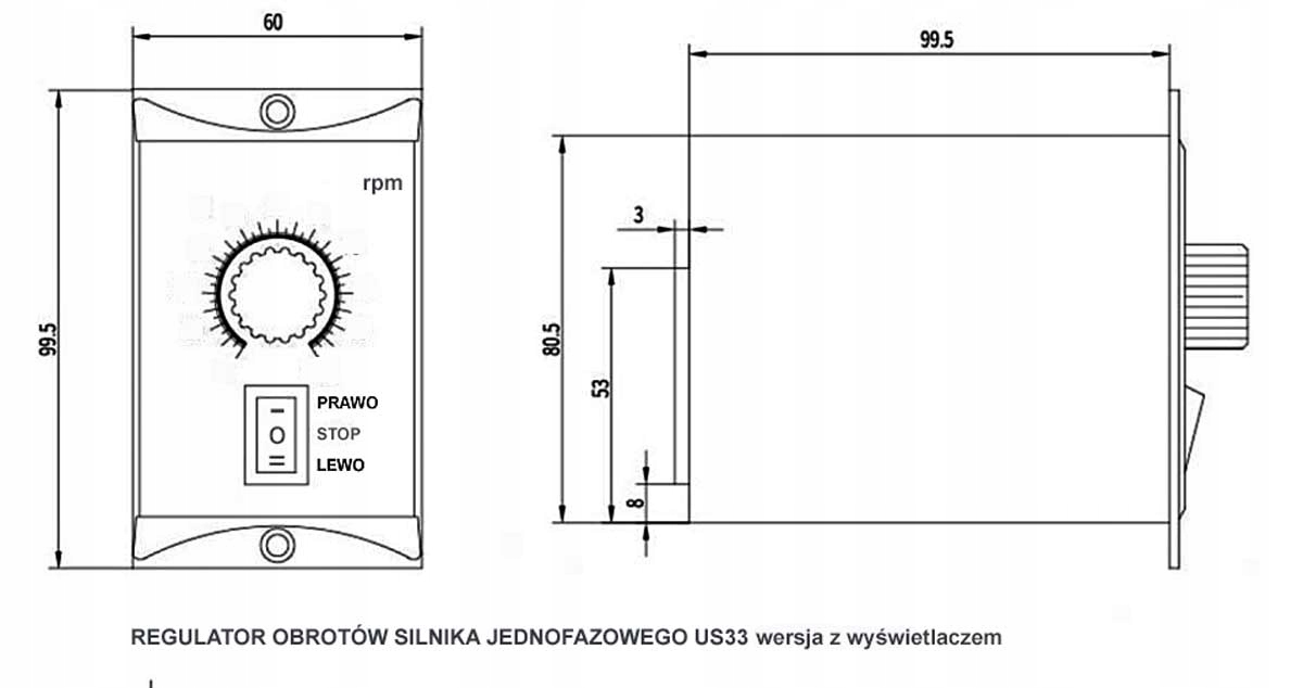 - изменение направления вращения и остановка при включении передняя часть регулятора