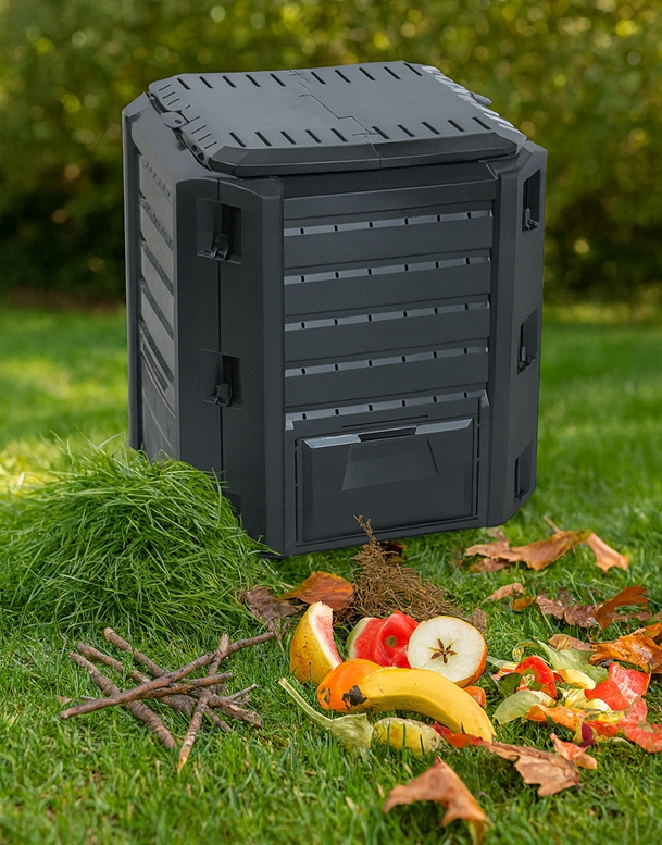 ✔ Закрытая форма - ограничивает доступ животных внутрь компостера, повышая гигиеничность и безопасность.