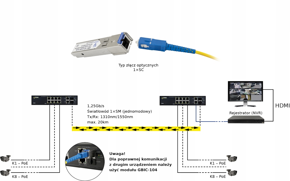 - для корректной связи со вторым устройством используйте модуль GBIC-104 ul>