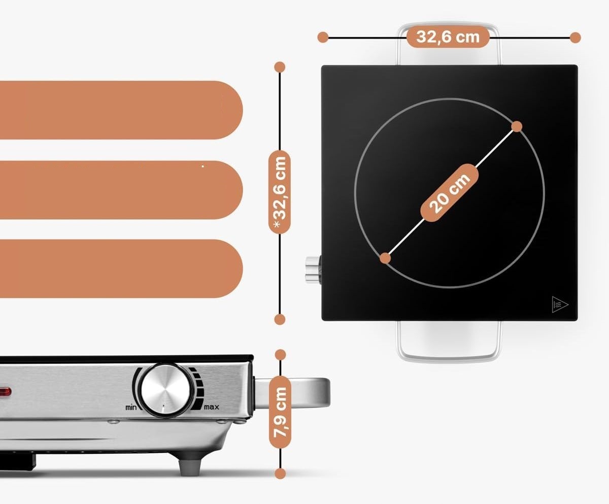 твердый корпус, легко чистить поверхность и ручки, которые охлаждаются, даже когда тарелка нагревается. Он быстро нагревается, достигая установленного уровня мощности, адаптированного к действиям, которые вы хотите выполнить. Вы можете установить ручку из нержавеющей стали, указав операцию, которую вы хотите выполнить, без необходимости контролировать температуру или мощность.