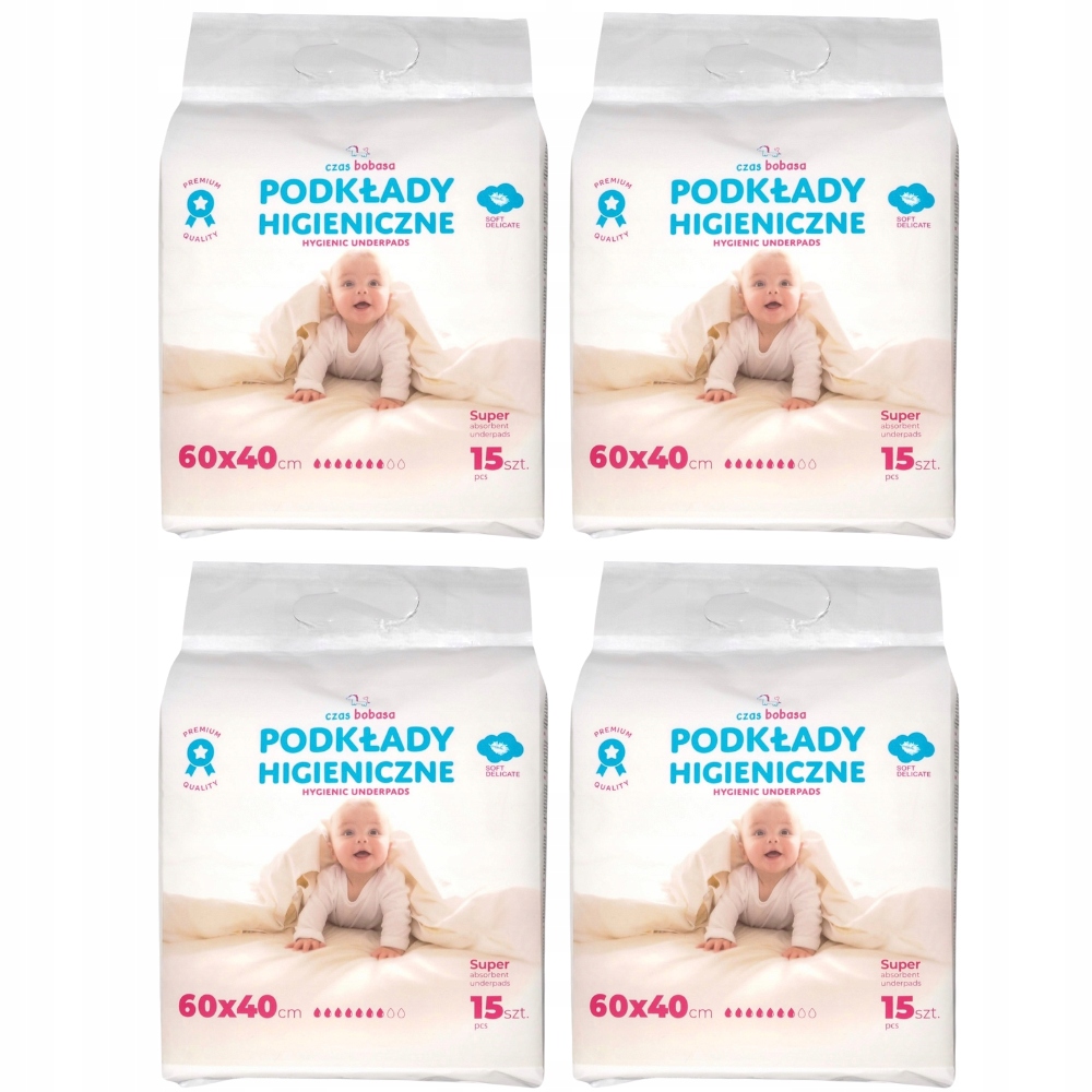 4 упаковки одноразовых прокладок, размеры: 40х60 см (в упаковке 15 шт.)