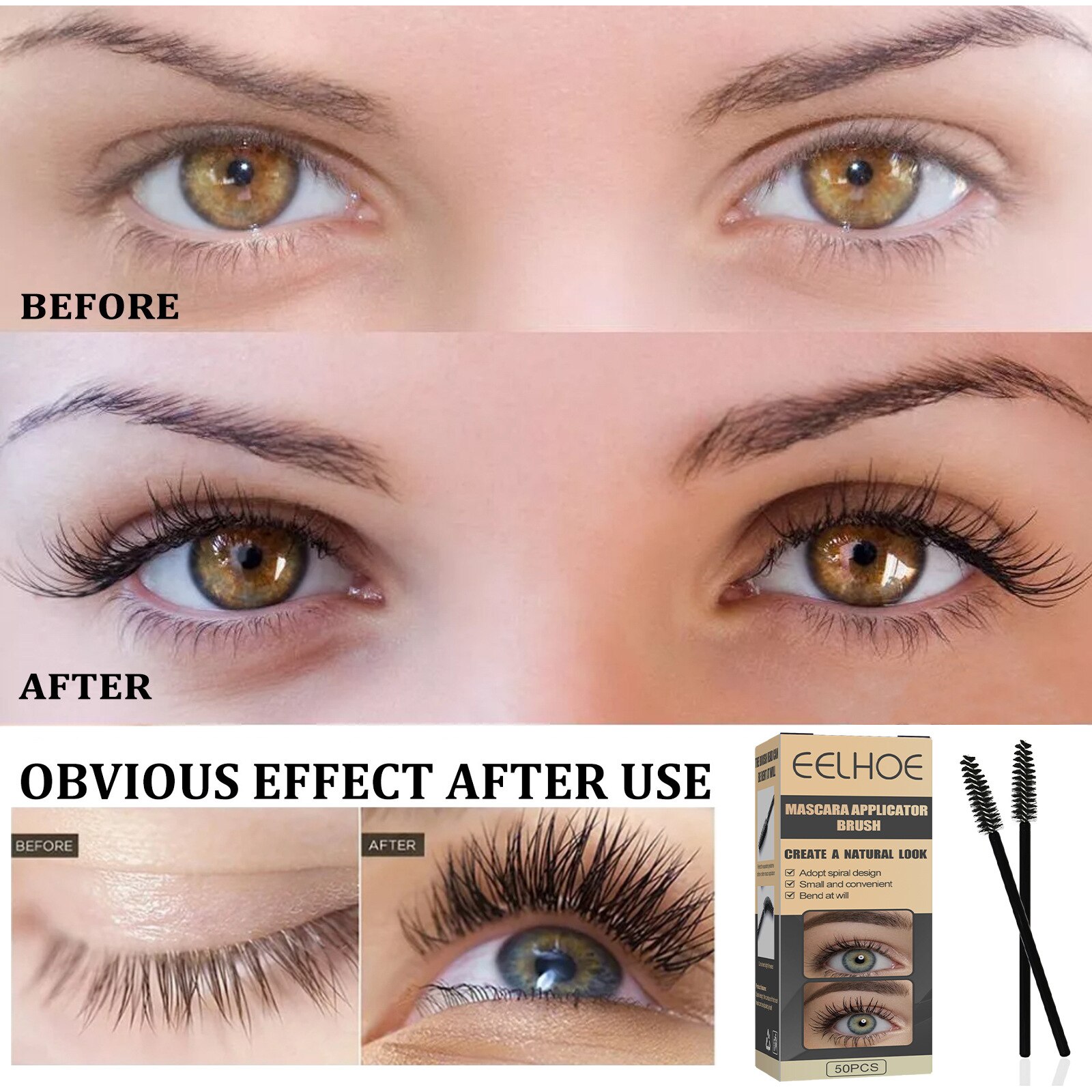 EELHOE 50 шт., кисть для ресниц, одноразовая спираль, наращивание ресниц, завиток, аппликатор для бровей, кисть для туши, палочки для макияжа глаз, инструменты для макияжа глаз.