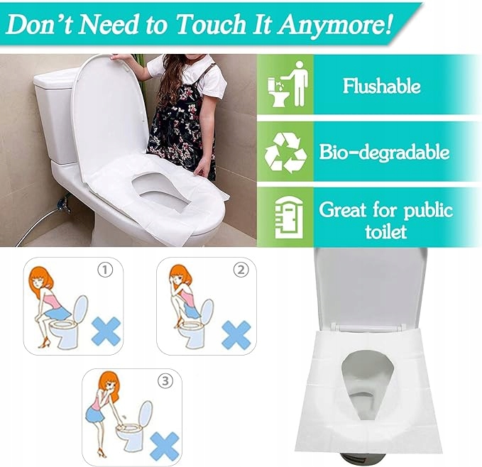 ОДНОРАЗОВІ ЧОХЛИ НА СИДІННЯ ДЛЯ УНІТАЗУ 60 ШТ. ЗМИВНИЙ ПАПЕРОВИЙ ТУАЛЕТ