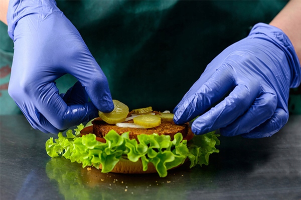 Предприятия общественного питания – нитриловые перчатки разрешены для контакта с пищевыми продуктами благодаря соблюдению требований Европейской медицинской директивы 93/42/EEC.