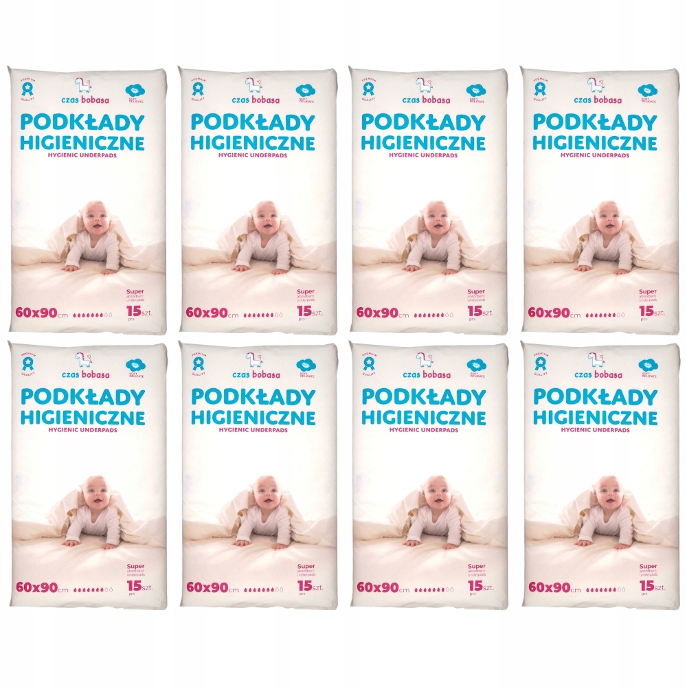 8 упаковок одноразовых прокладок, размеры: 90х60 см (в упаковке 15 штук)